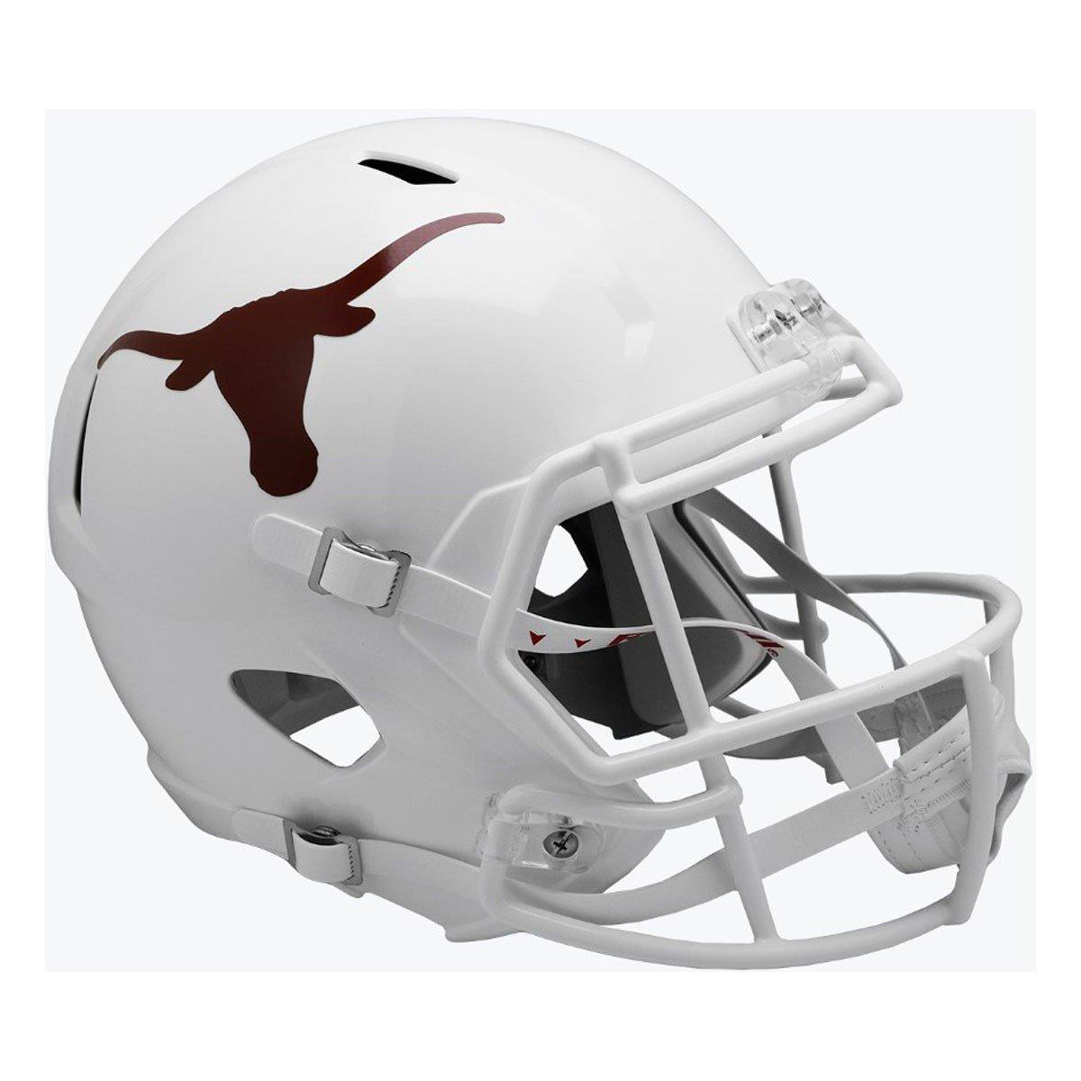 Proudly display your Texas Longhorns spirit with the Riddell Texas Longhorns Replica Speed Helmet. Whether you’re a collector of all things Texas Longhorns or want to display your pride, this piece of Texas Longhorns memorabilia will help you do just that. From the home to the office, this College collectible will help you show off your team pride. With the Riddell Texas Longhorns Replica Speed Helmet, no one will doubt your favorite College team.