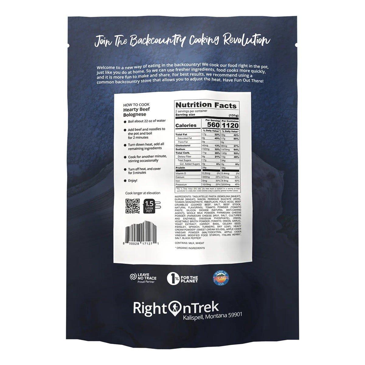 RightOnTrek Hearty Beef Bolognese 2 Person