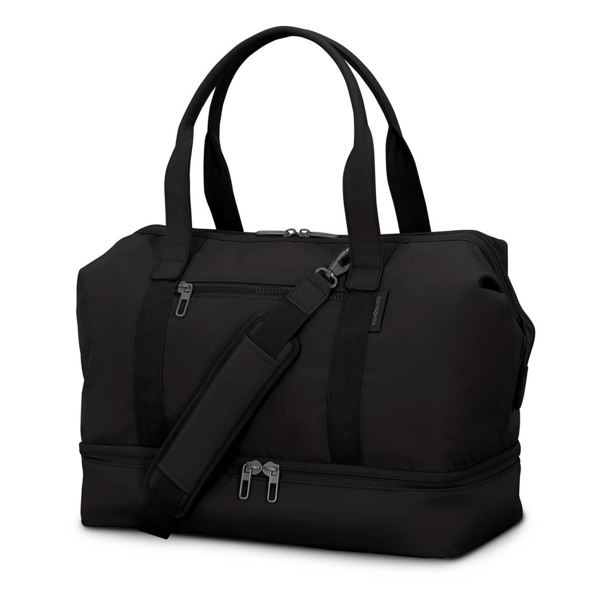 The Samsonite Drop Bottom Weekender Bag is designed to maximize your packing efficiency, making it the ideal choice for weekend getaways or short business trips. This bag's defining feature is the separate drop-bottom compartment, which provides dedicated, organized storage for shoes, toiletries, or keeping clean clothes away from dirty items. The spacious main compartment offers ample room for all your travel essentials, while durable material ensures the bag withstands the rigors of frequent travel. With multiple pockets for organization and versatile carrying options, the Samsonite Drop Bottom Weekender Bag is built for streamlined, stress-free packing.