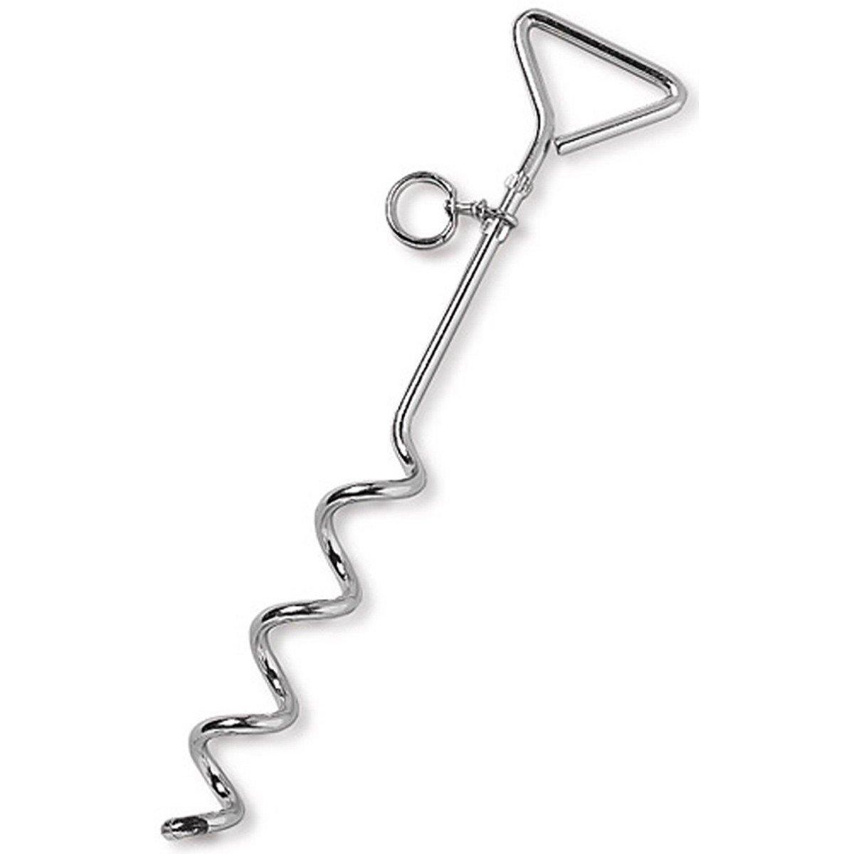 Use the Scott Pet Spiral Stake to keep your pet safe in his space. The corkscrew design keeps it secure in the ground. 360 degree swivel ring on the Scott Pet Spiral Stake allows you to attach a tie-out cable for more roaming space for your pet.