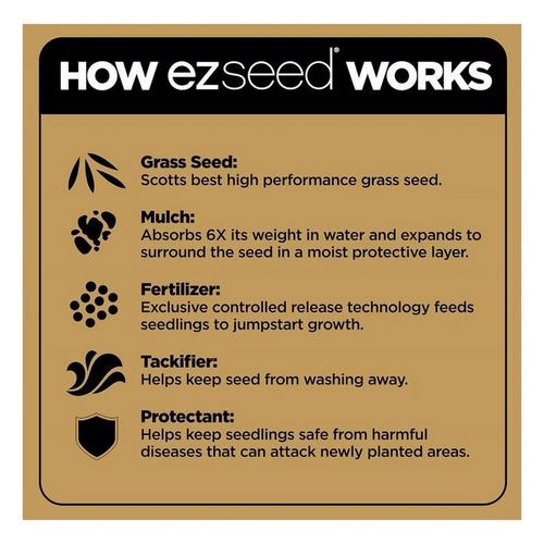 Scotts EZ Seed Patch and Repair Sun and Shade is a revolutionary seeding mix that guarantees seeding success. The unique combination of Scotts high performance seed, premium continuous release lawn food and super-absorbent growing material, makes it possible for grass to grow anywhere.