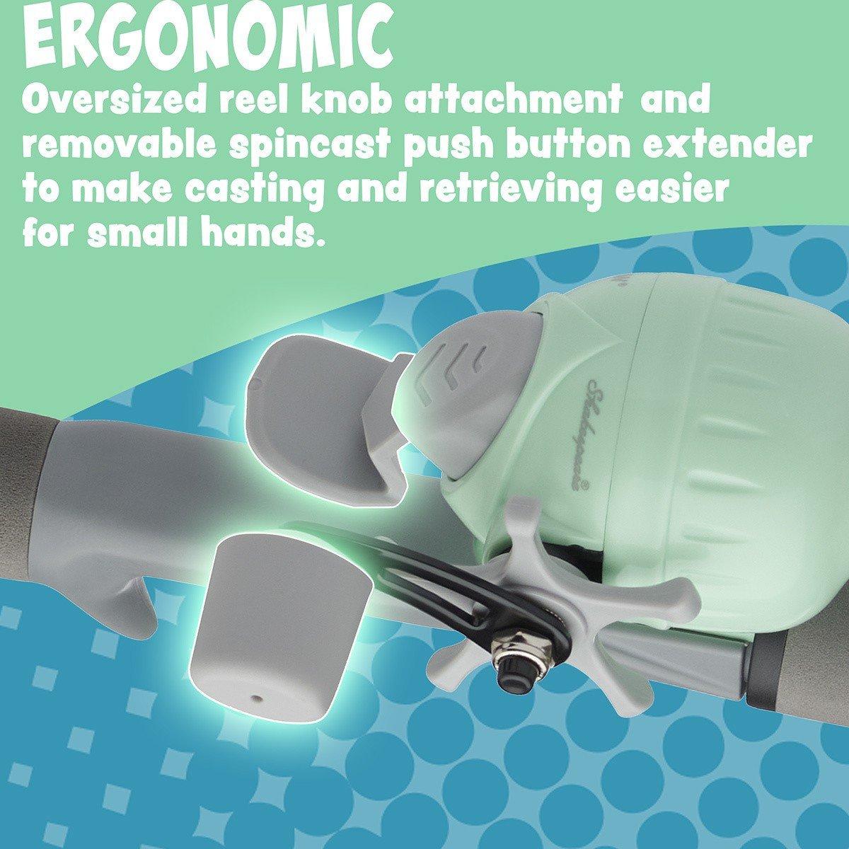 The Shakespeare Youth EZ-Grow Kit is the perfect way to introduce young children to the world of fishing! Kids will love this all-in-one rod and reel combo that comes pre-spooled with bright-colored line. The rod length can be increased as your child grows, from 34" to 53". The spincast reel is easy to operate for small hands.