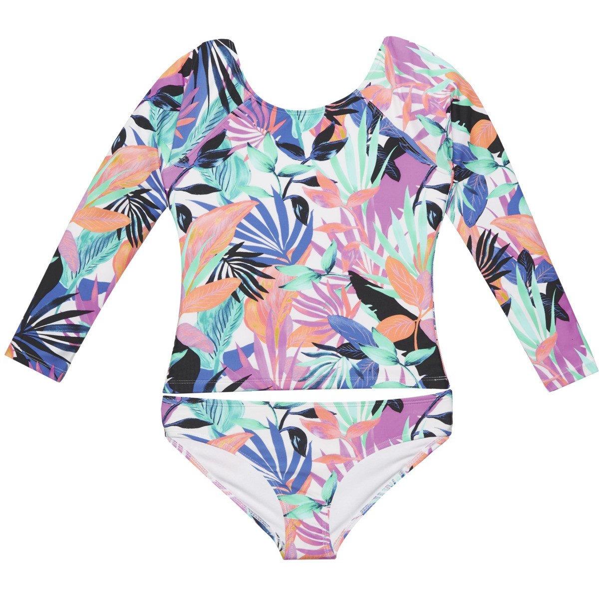 The Girls' Raisins Shes Like Summer Long Sleeve Rashguard Swim Set is a must-have for any young swimmer's wardrobe. Designed with sun protection in mind, this stylish set features a vibrant, eye-catching print and long sleeves to keep her safe from harmful UV rays during all her beach adventures. The comfortable, quick-dry fabric ensures she stays cool and comfy, whether she's splashing in the waves or building sandcastles. With its perfect blend of fashion and functionality, this swim set is ideal for parents looking to keep their little ones protected and stylish all summer long.