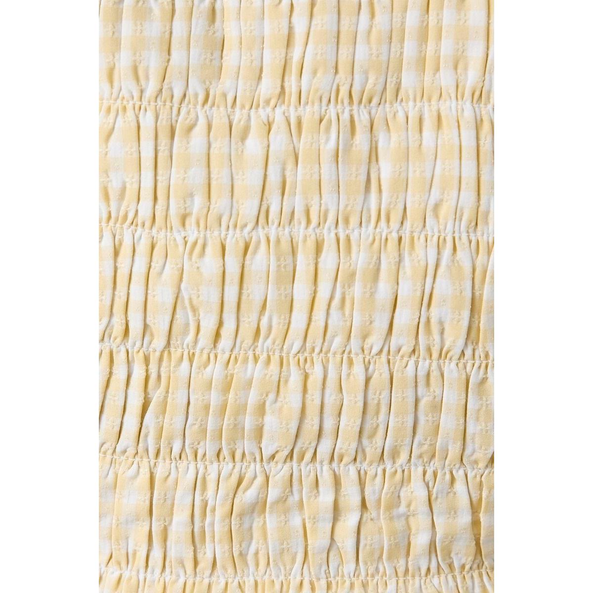 {"reviews":[],"offset":0,"limit":10,"total":0}"Full Description:\n<p>This gingham tank features shirred detailing for a flattering, feminine fit. Lightweight and charming, it’s perfect for warm days and casual styling. </p>\n\nSpecifications:\n\u003cul>\n\u003cli>65%RAYON 32%POLYESTER 3%SPANDEX\u003c/li>\n\u003c/ul>\n"
