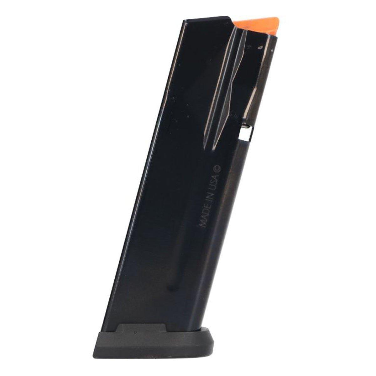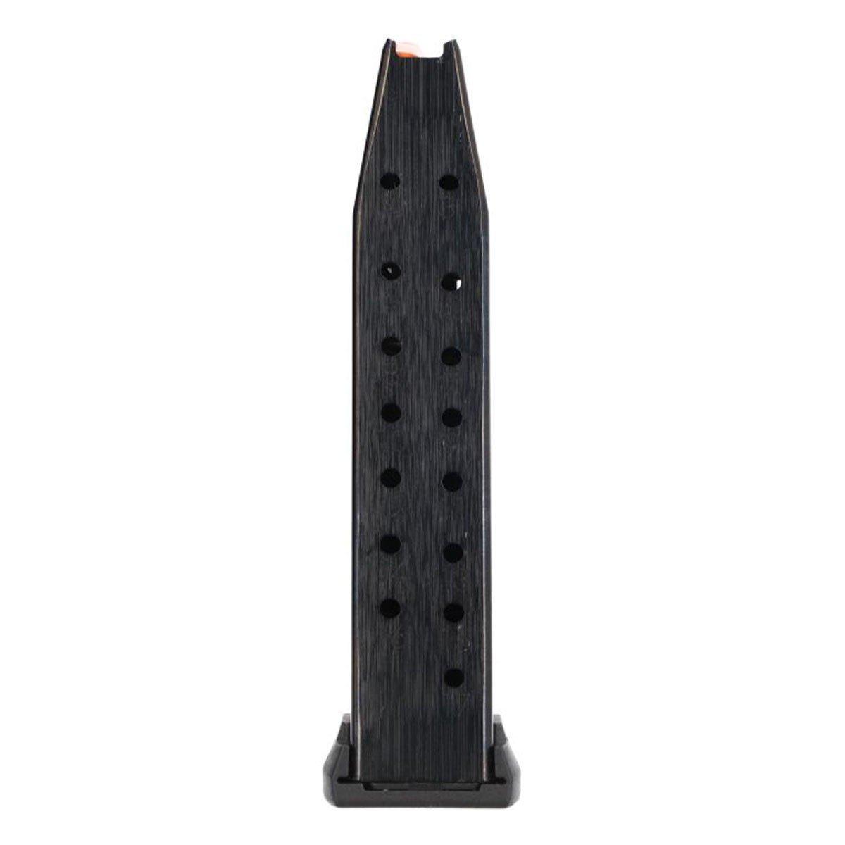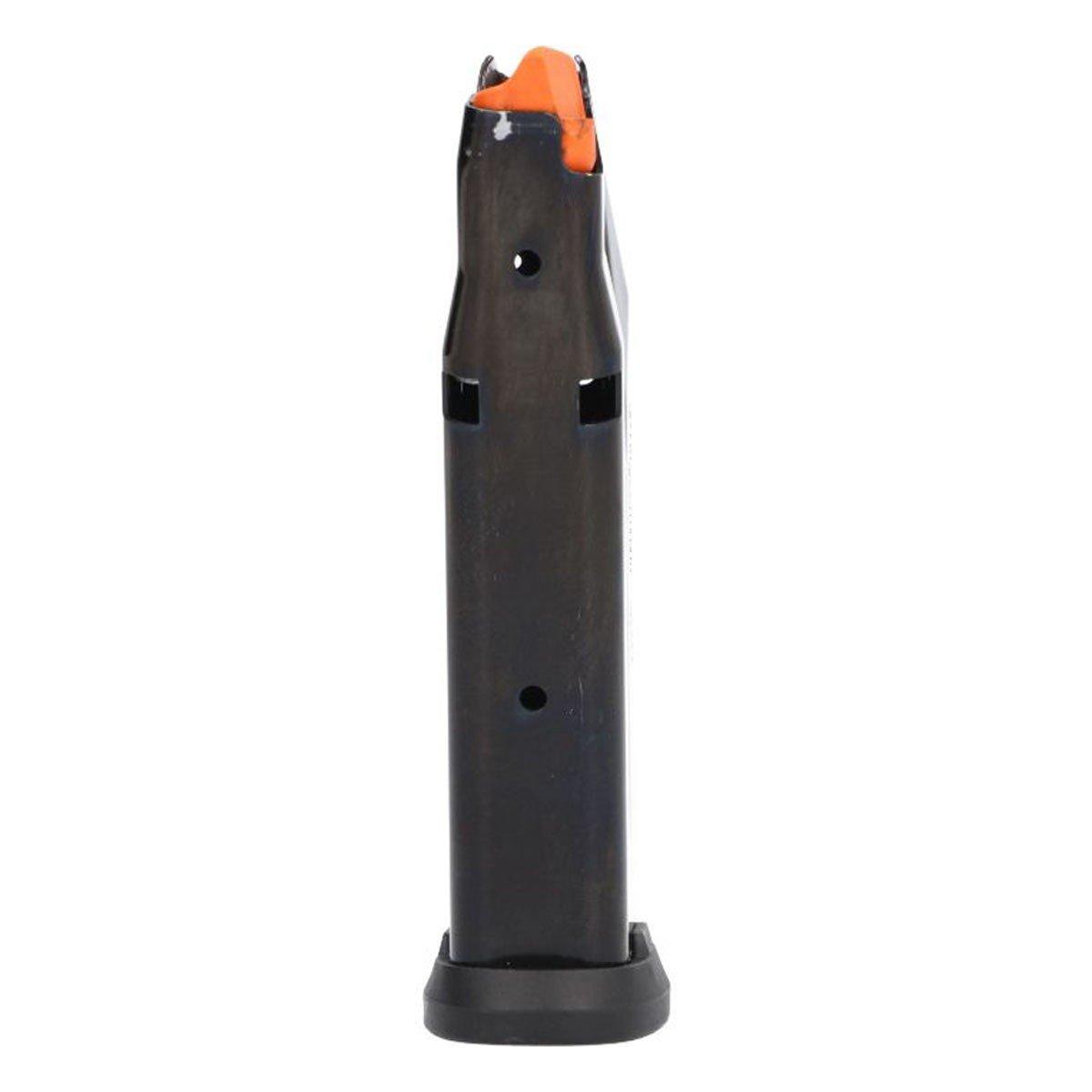 Factory 17-round steel magazine for the P365-XMACRO pistol but also fits all P365 models. This magazine includes rear witness holes to confirm loaded capacity and an orange follower making it easy to identify when unloaded. We include two additional interchangeable floor plates to accommodate the grip length differences of the P365, P365X, and P365XL. It comes configured for the P365-XMACRO.