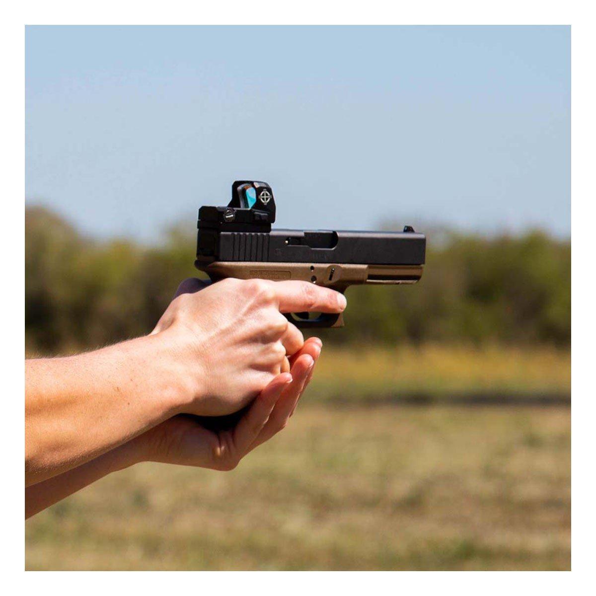 A rugged, micro red dot optic ideal for a wide-range of shooting applications, the Mini Shot A-Spec reflex sight’s wide field of view, 2 MOA red dot reticle and included AR riser and low-profile mounts allow it to be used effectively and comfortably on pistols, rifles and even shotguns. Built to last, the Mini A-Spec features a rugged steel protective shield and aluminum alloy housing. Ten reticle brightness settings and user-friendly ambidextrous digital brightness controls permit the A-Spec to be used in virtually any environment, from bright sunny days to low-light conditions. All Mini A-