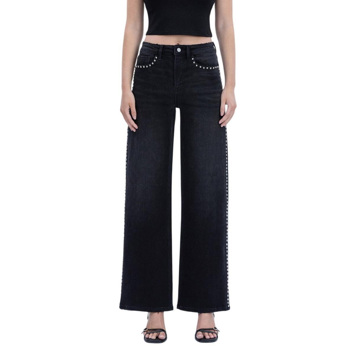 Women's Vervet Silver Dome Nail Head Detail Wide Leg Jeans