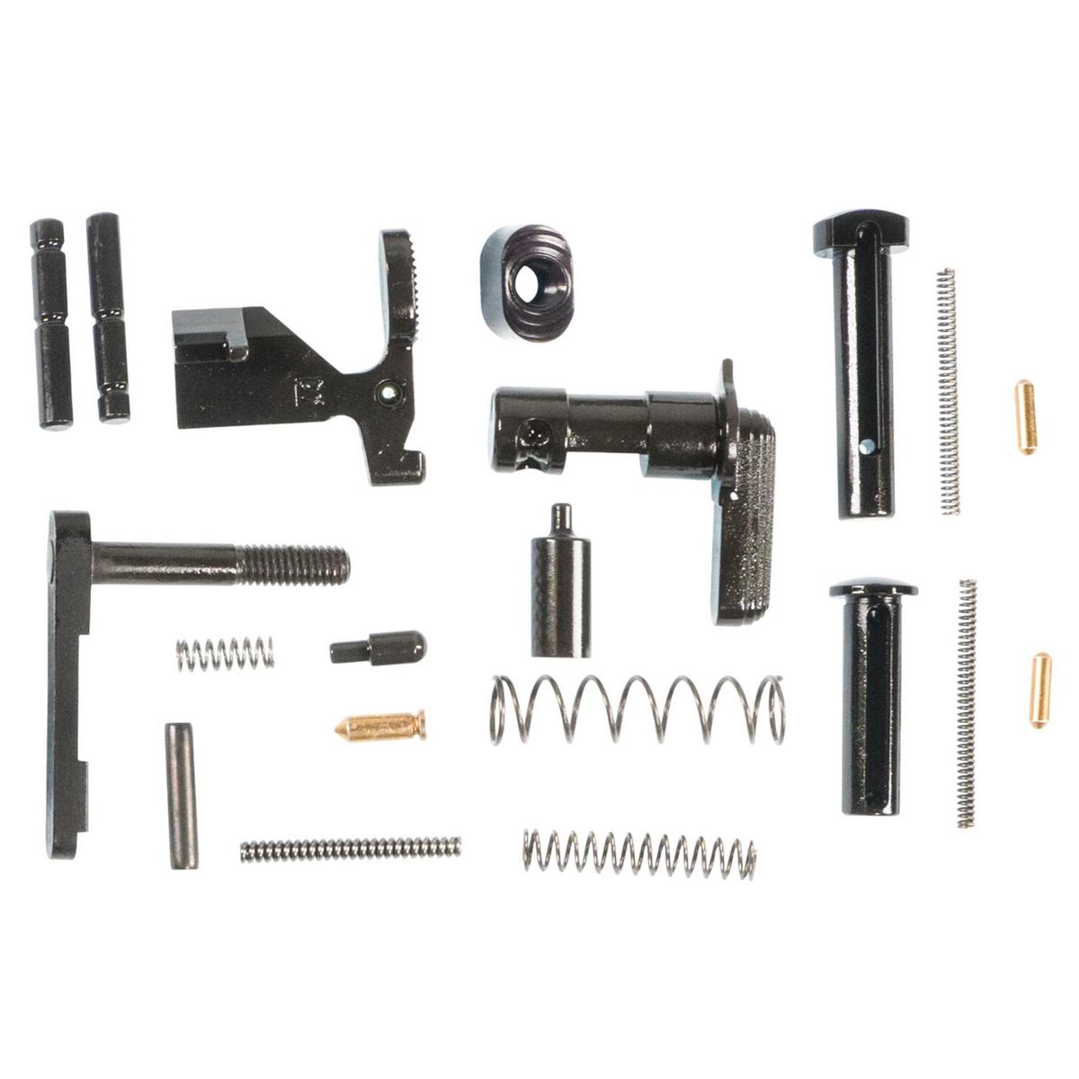 The M&P Customizable lower parts kit is the ideal choice if you want to build a custom AR-15. This kit provides all the minor parts generally used in an AR-15 build, but allows the flexibility to add popular common aftermarket upgrades. The kit includes a bolt catch, plunger, roll pin and spring; buffer retainer and spring; hammer pin; magazine catch, button, and spring; pivot pin, pin detent and pin detent spring; selector detent and spring; takedown pin, pin detent, and pin detent spring and trigger pin.