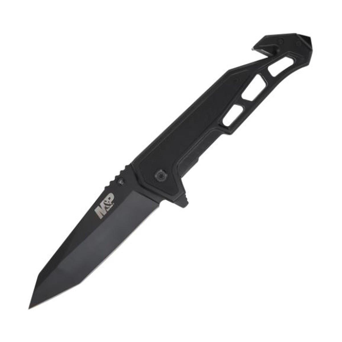 The Smith & Wesson® M&P® Border Guard Spring-Assisted Folding Knife features a spring-assisted finger flipper and liner lock so it's easy to open and close with just a single hand. A hardened glass breaker and stainless steel strap cutter make it a great EDC knife so it's always on hand for an emergency. The solid steel handle with G10 panels provide the best of durability and all-weather grip, plus the high-carbon 8Cr13MoV steel blade holds an edge incredibly well. The Smith & Wesson M&P Border Guard Spring-Assisted Folding Knife is finished with a tip-down pocket clip for easy carrying. Blade Length: 3.99". Closed Length: 5.26". OAL: 9.25".