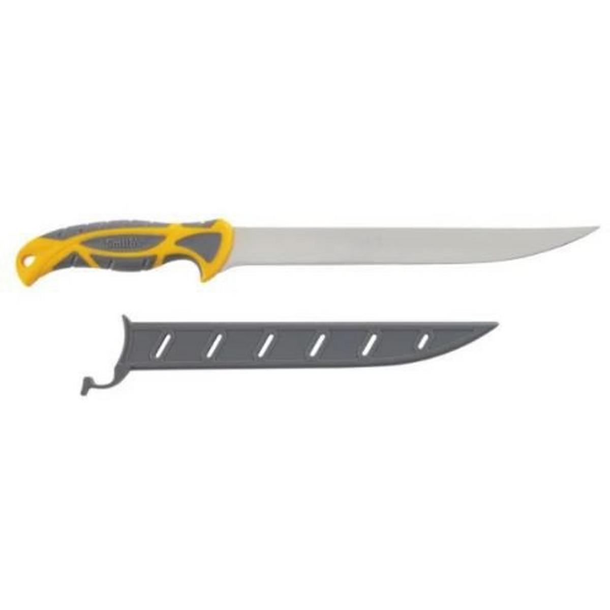 Smith's 9" RegalRiver Fillet knife has a non-slip TPE soft grip ergonomic handle and a breathable protective sheath. Features razor-sharp 400 series stainless steel blade.9" Razor sharp 400 series stainless blade - Non-slip soft grip TPE ergonomic handle - Breathable protective sheath - Care Instructions: Hand wash - Lanyard hole - - - - -
