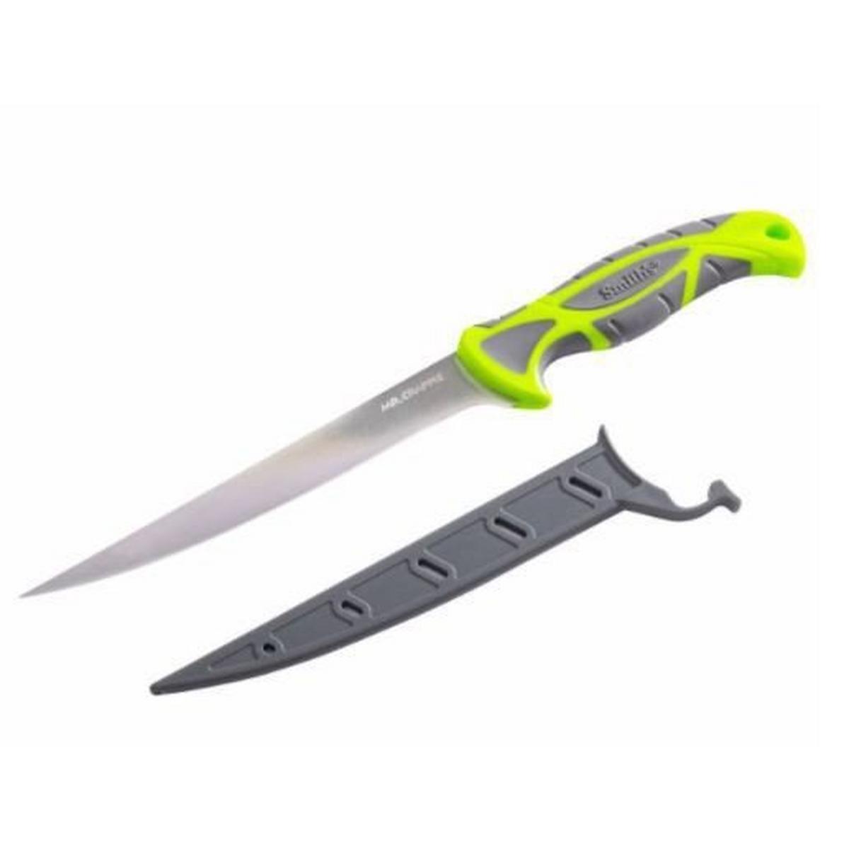 Smith's Mr. Crappie's 7" Fillet knife has a non-slip TPE soft grip ergonomic handle and a breathable protective sheath. Features razor-sharp 400 series stainless steel blade.7" BLADE: The 7" fillet knife is sharp and flexible. Great for crappie, and other types of pan fish. - NON-SLIP HANDLE: TPE none slip handle provides a strong grip even when wet. - PROTECTIVE SLEEVE: Breathable sleeve will protect the edge of the blade and the rest of your gear. - STAINLESS STEEL: The 420 stainless steel blade provides a sharp flexible edge. - LANYARD HOLE: Sure your knife with a wrist strap or simple hang it at your fillet table. - - - - -