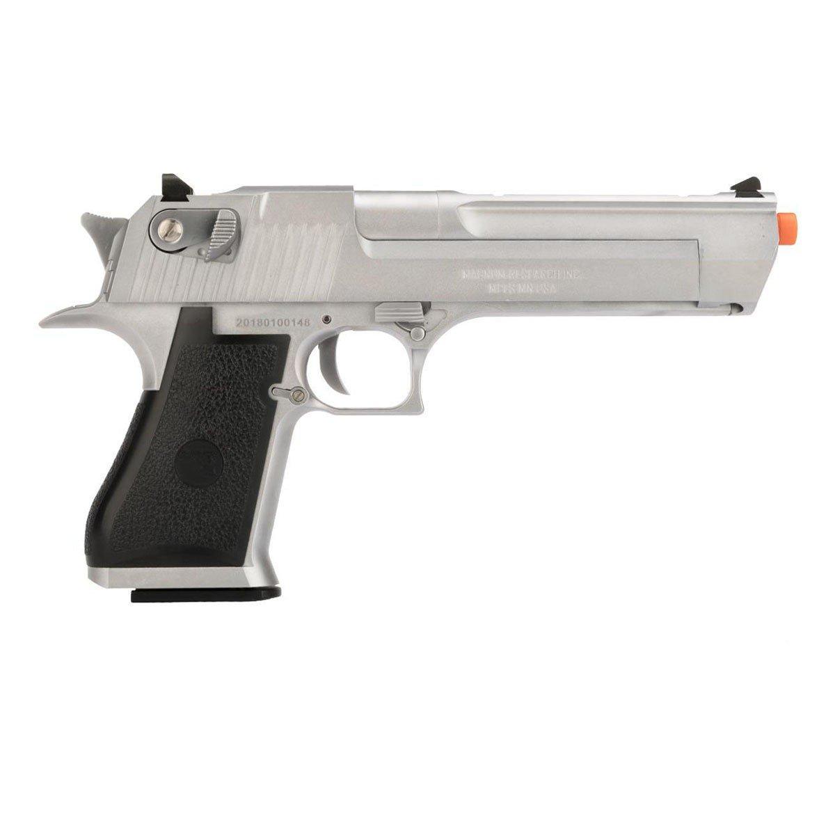 Discover the unmatched realism and performance of the SoftAir Desert Eagle-SLV, now available at SCHEELS. Featuring a full metal frame and slide that replicates the weight and feel of the iconic Magnum Research Desert Eagle, this airsoft pistol offers a truly authentic experience. The fully licensed trademarks and markings add a level of detail rarely seen in other replicas, making it ideal for collectors and enthusiasts alike. The realistic blowback action delivers a satisfying kick and impressive performance, while the injection-molded polymer grip panels provide secure handling with Desert Eagle authenticity. With a 21-round magazine, functioning safety, and magazine release, along with realistic field stripping, this airsoft model is both practical and engaging. Elevate your airsoft game with a piece that combines quality, performance, and authenticity. Shop this and other premium selections at SCHEELS and feel the difference in every shot.