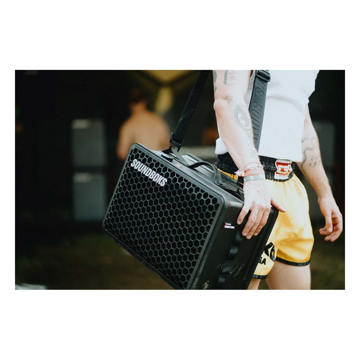 The SOUNDBOKS Go Carrier Strap allows you to carry your favorite speaker handsfree. Simply strap it onto your SOUNDBOKS Go, throw it on your shoulder, and take your music with you wherever you go. Designed with adjustable straps, extra padding for shoulder support, and durable metal clasps, it’s built to last.