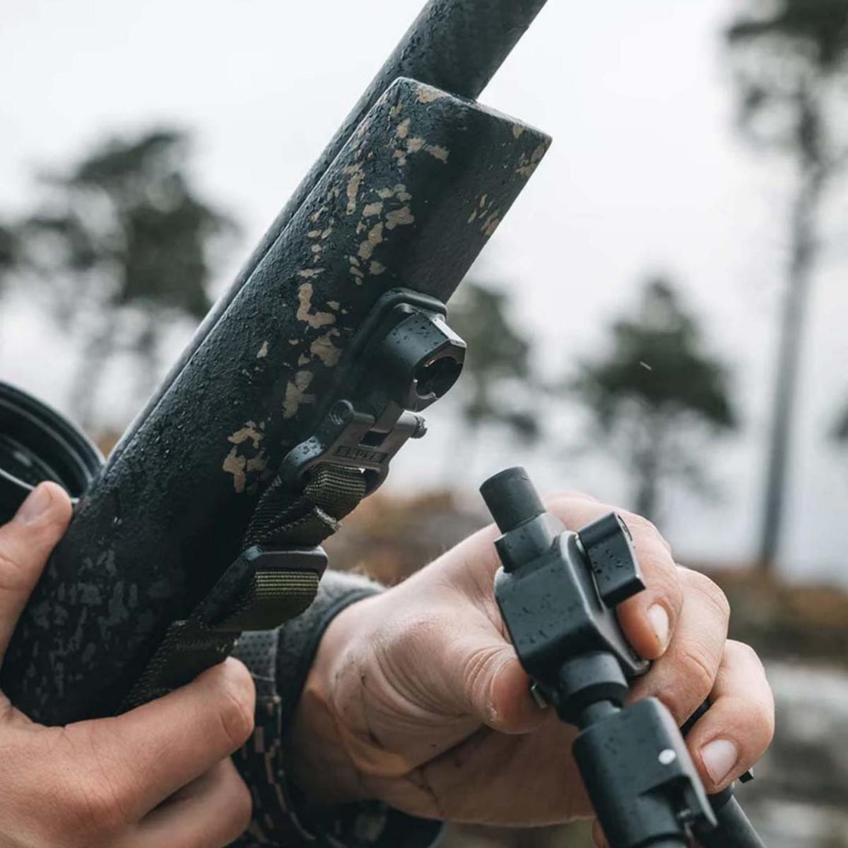 Ultra-lightweight, packable, and featuring the MagnaSwitch quick detach system, the Javelin Pro Hunt Tac Bipod provides stability for hunters in demanding environments. Spring-assisted legs allow one-handed height adjustment, and the 7075 aluminum and carbon fiber construction ensures durability on rugged backcountry hunts.