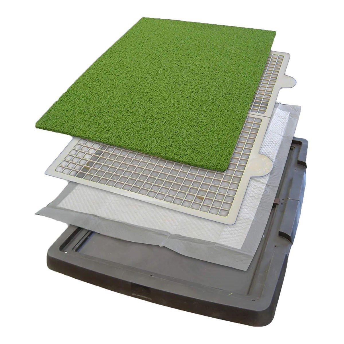 Spotty™ Indoor Dog Potty is a revolutionary, natural in-home training system for dogs and puppies. This system quickly separates and absorbs liquid pet waste for superior odor control for up to one week. The scented grass inlay is infused with a proprietary additive that attracts dogs and the snap-in channel grid helps to hold the Spotty™ IndoorDog Potty pads in place. No more coming home to shredded puppy pads! The Spotty™ Indoor Dog Potty will save you time and money! 32"x21", for dogs up to 46lbs. Includes potty system, 2 super thick puppy pads, 5 heavy-duty cleansing wipes, and training guide.
