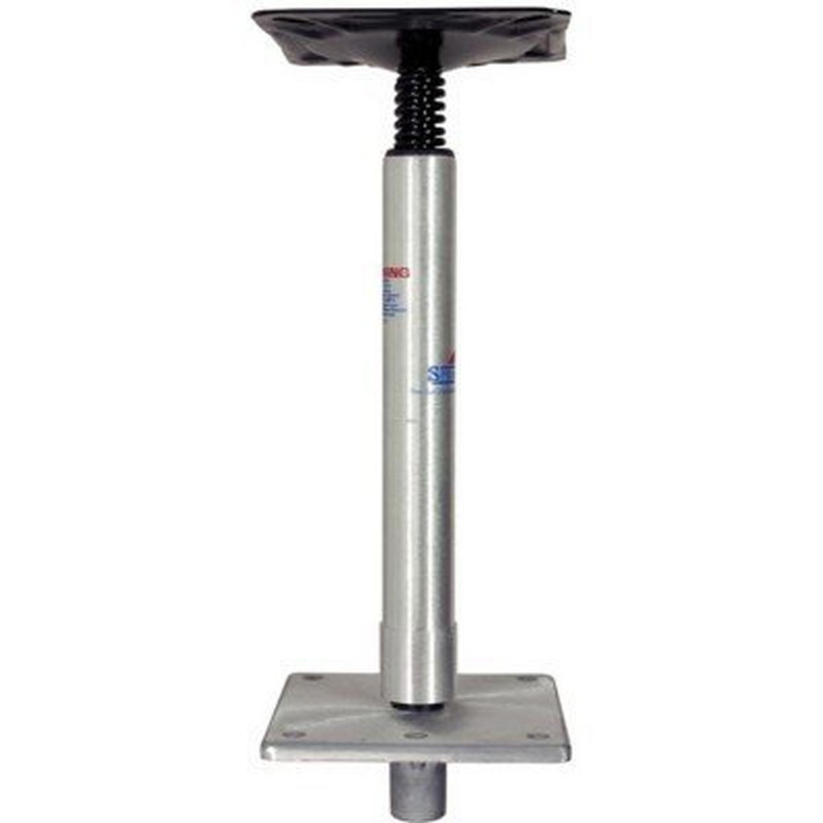 This pedestal uses the Springfield Marine KingPin base. A 3/4" E-Coated steel pin extends from the bottom of the pedestal as well as from the bottom of the seat mount. Each pin fits into the socket of the KingPin deck base.