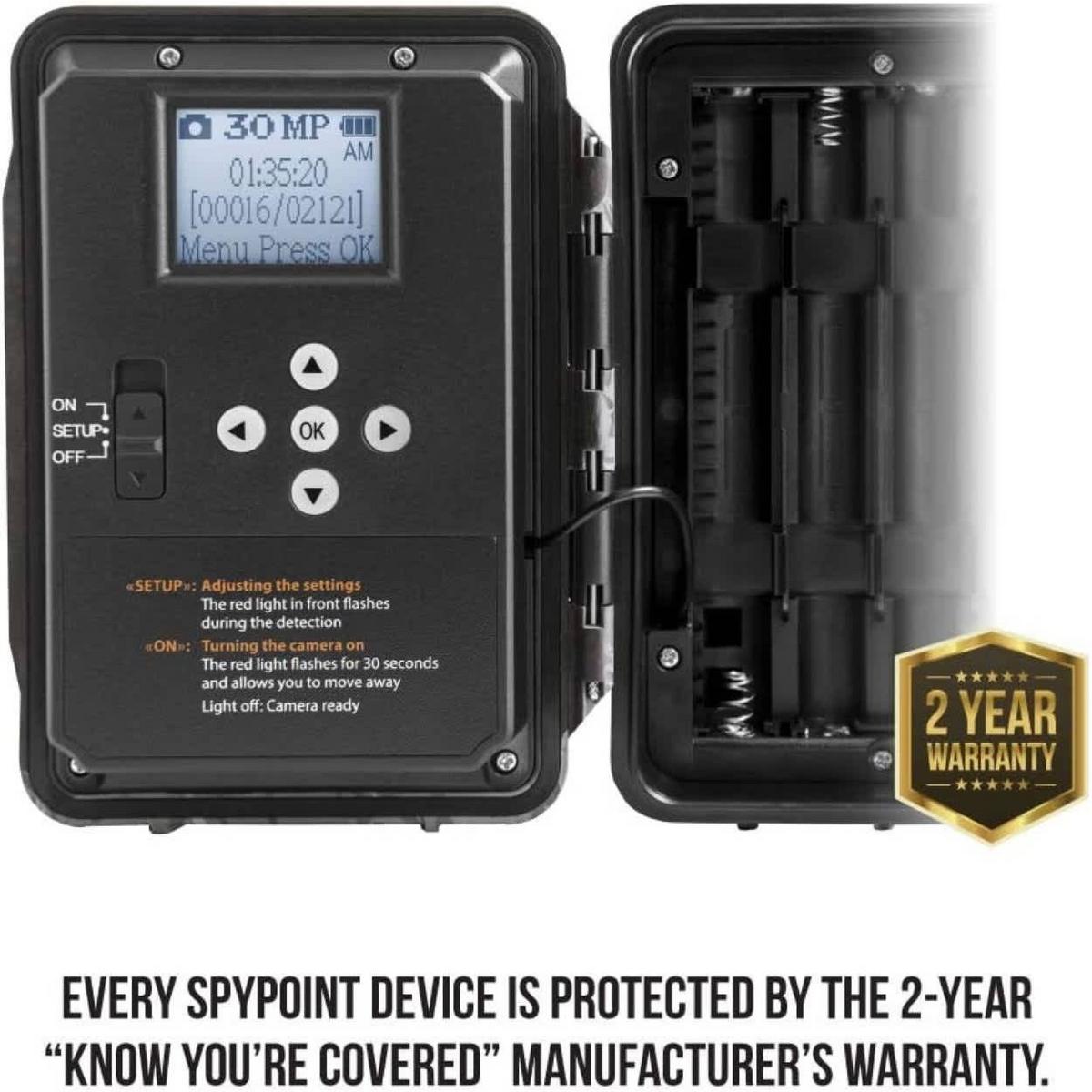 The Force-Pro from Spypoint captures 30-megapixel images and records 4k video with sound to deliver high-resolution viewing of wild game. A 54 LED flash provides powerful illumination for nighttime captures. Its massive 110’ detection range helps spot animals that you may otherwise miss. This camera requires a SD card and 8 AA batteries to operate.