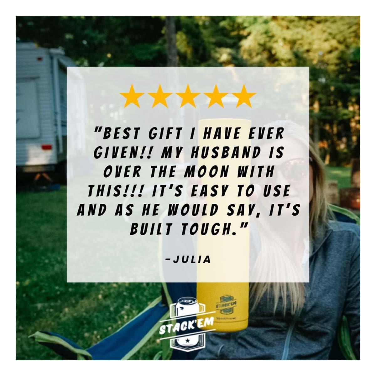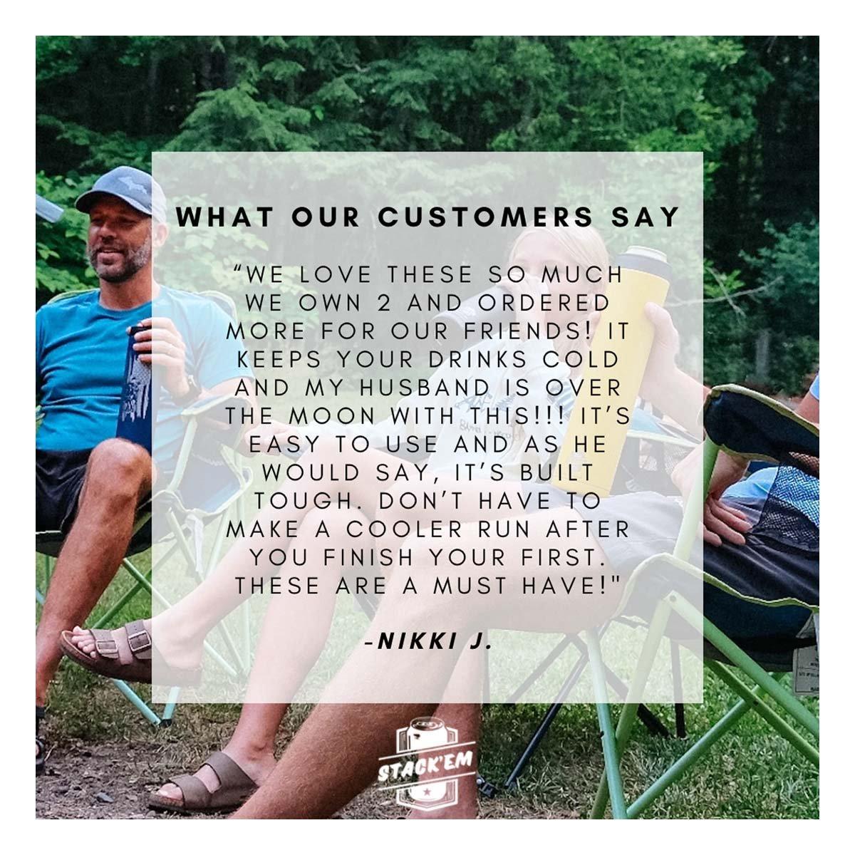 {"reviews":[],"offset":0,"limit":10,"total":0}"Full Description:\nThe Stack'Em 16 oz Slim Double Coozie is designed for 12–16 oz slim cans, featuring double-wall insulation to keep beverages cold longer. Its stackable design offers convenience, while the secure grip ensures comfort and style.\n\nFeatures:\n\u003cul>\n\u003cli>Comes with a skinny lid. Holds two 16 or 12 oz cans. Perfect for those seltzer drinkers!\u003c/li>\n\u003c/ul>\n\nSpecifications:\n\u003cul>\n\u003cli>Stainless steel\u003c/li>\n\u003c/ul>\n"