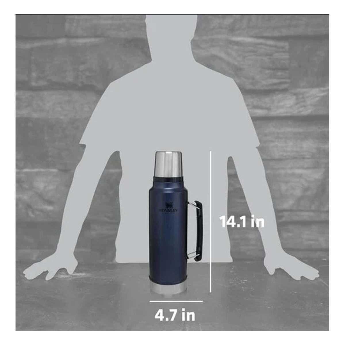 Keep liquids hot or cold for long periods of time with the popular Stanley Classic Vacuum 1.5QT Bottle. This Stanley bottle features 18/8 stainless steel for improved toughness and durability on your outdoor adventure. The double-wall vacuum insulation technology can keep liquids hot or cold between 35 and 40 hours while keeping ice frozen for up to 6 days. This Stanley Classic Vacuum Bottle is leakproof and dishwasher safe as well. Plus, the insulated lid doubles as a cup for a quick rehydration break or a sip of hot coffee on the trail. Enjoy your outdoor adventure knowing your liquids will stay hot or cold with the Stanley Classic Vacuum 1.5QT Bottle.