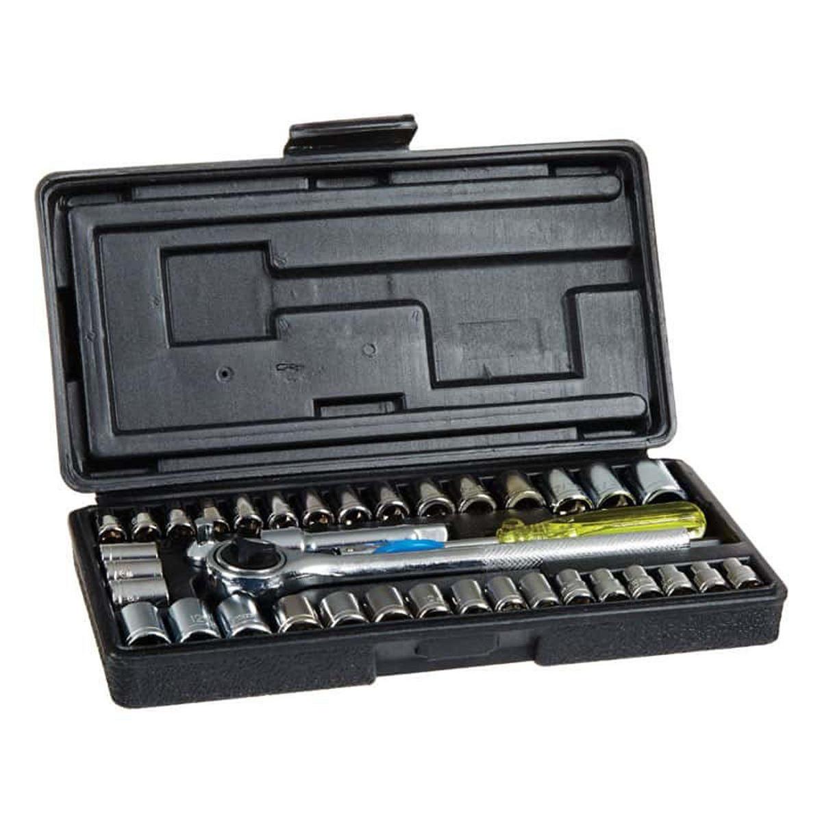 {"reviews":[],"offset":0,"limit":10,"total":0}"Full Description:\nSteel Grip Metric and SAE Socket and Ratchet Set - 40 Piece\n\nSpecifications:\n\u003cul>\n\u003cli>Product Type: Socket and Ratchet Set\u003c/li>\n\u003cli>Brand Name: Steel Grip\u003c/li>\n\u003cli>Drive Size: 1/4 and 3/8 inch drive\u003c/li>\n\u003cli>Finish: Polished Chrome\u003c/li>\n\u003cli>Material: Steel\u003c/li>\n\u003cli>Metric or SAE: Metric and SAE\u003c/li>\n\u003cli>Number in Package: 40 piece\u003c/li>\n\u003cli>Packaging Type: Boxed\u003c/li>\n\u003c/ul>\n"