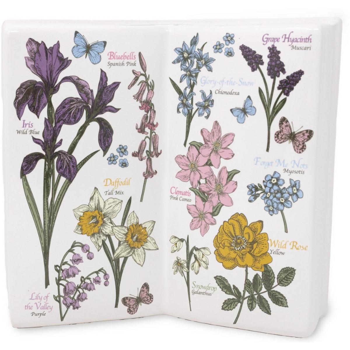 Add whimsical wildflowers to your home with this ceramic vase designed to look like an open book. Featuring a 360 design, the cover and pages are inspired by an almanac of wildflowers, while the sculpted elements make it look like a hardcover book sitting open on your shelves.