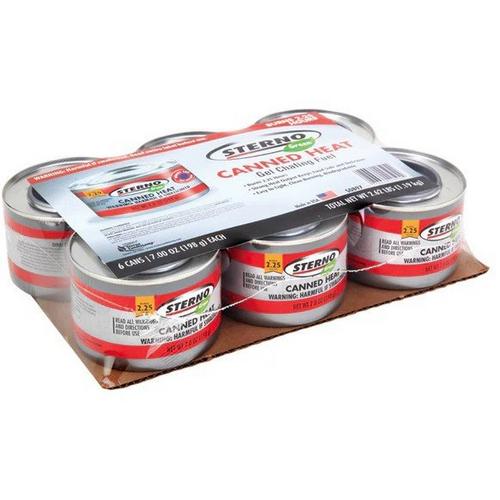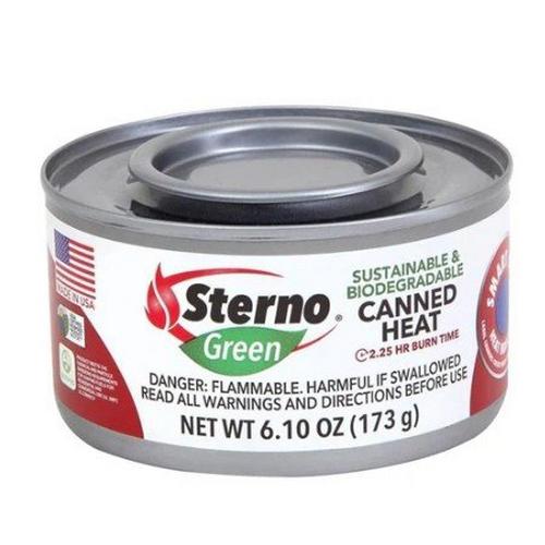 Our most popular canned heat. For over 100 years, the iconic Sterno® Green Canned Heat has been the trusted source for food warming by home entertainers and catering professionals. Chafing fuel consumers want safety, performance and convenience. Sterno is the ultimate solution in safety, performance, convenience and value when preparing for catering events or large home entertaining events where food must be kept at an optimal serving temperature. Each can burns up to 2.25 hours. Sold as a 6 pack. Ideal for keeping cooked food HOT during dining occasions lasting over 1 hour such as Thanksgiving, reunions and parties. Integrated Smart Can Indicator alerts the user when the can is too hot to handle. Ideal for use in Sterno® Wire Racks, Party Sets and Buffet Chafers.
