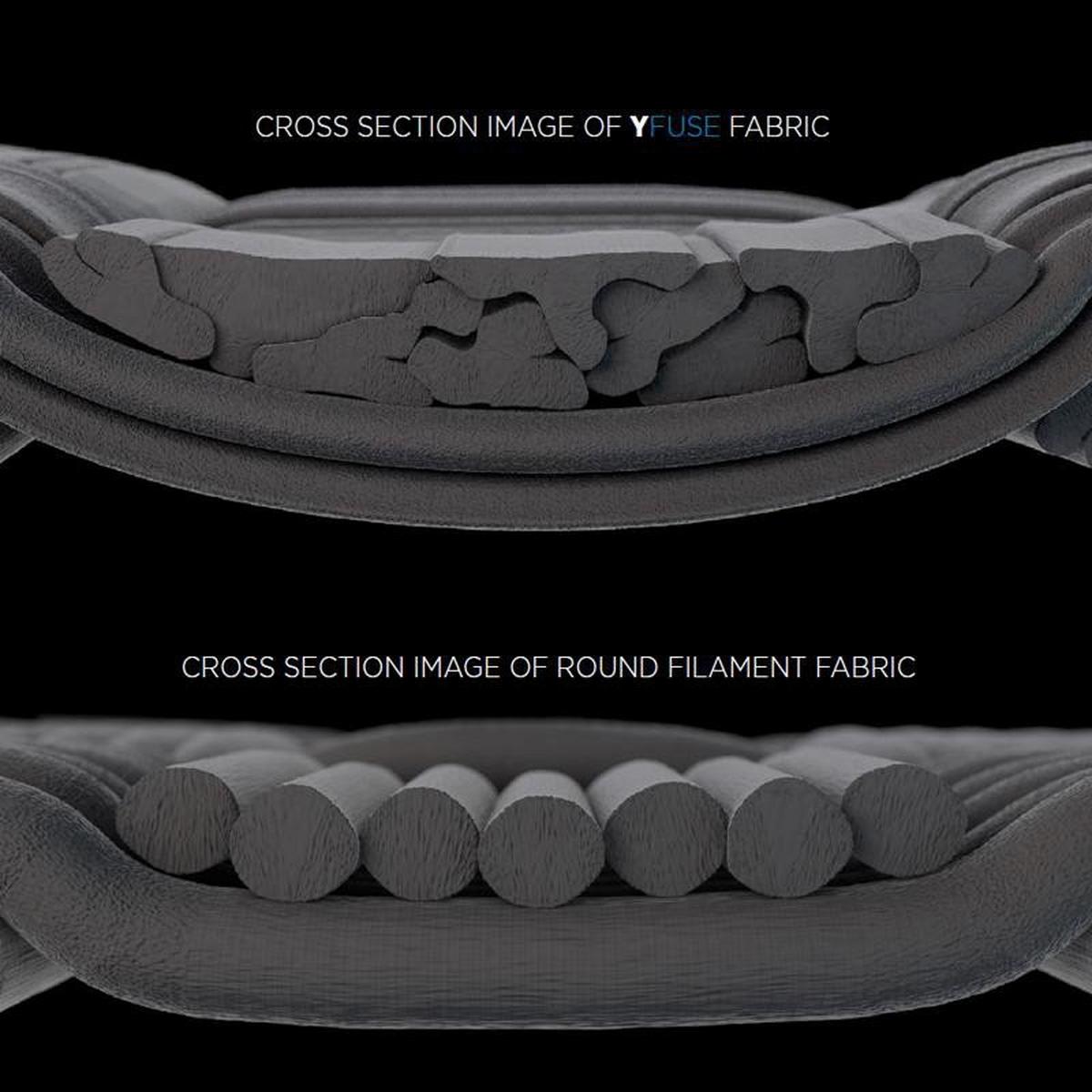 Pertex® Y Fuse fabrics use yarns with unique Y shaped filaments. These filaments create a tightly interlocking structure which improves downproof and water beading properties. The interlocking structure of Y Fuse fabrics remains highly stable over extended wash and wear cycles.