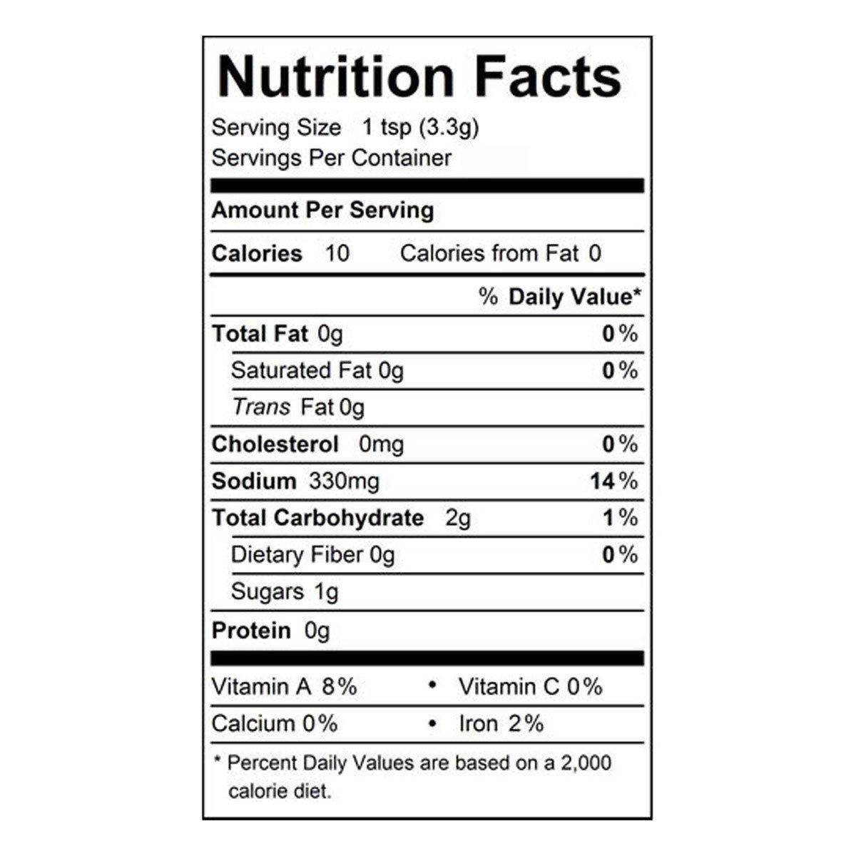 Ingredients: Paprika, Pepper, Salt, Sugar and Spices. NO MSG. Naturally Gluten Free