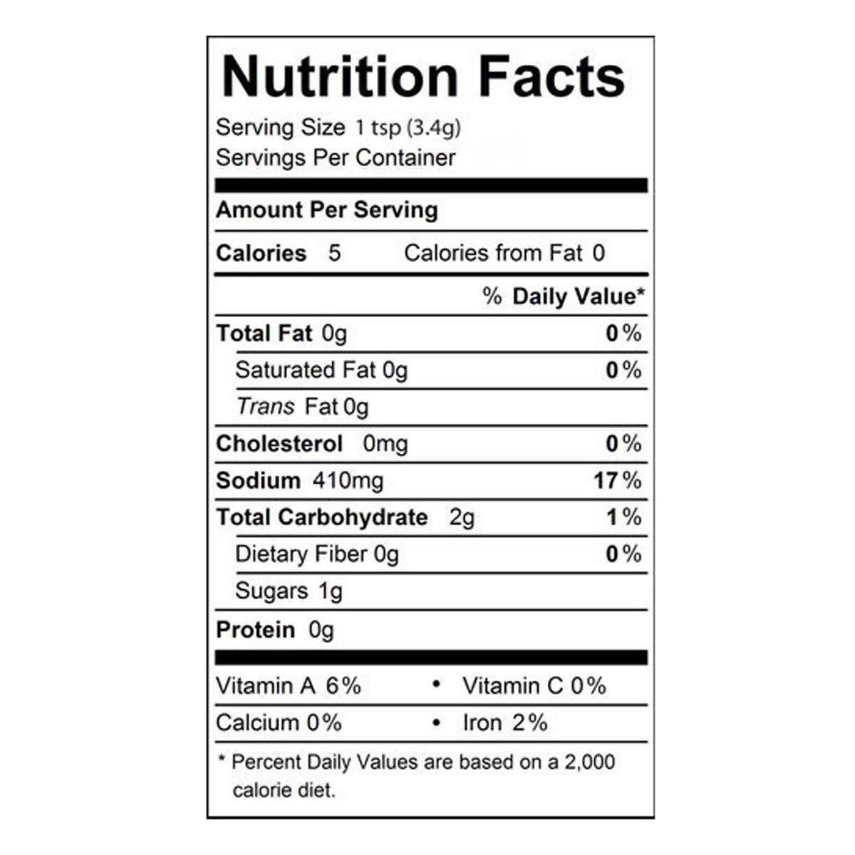 Ingredients: Paprika, Sugar, Salt, Black Pepper, Chile Powder, and Spices. NO MSG. Naturally Gluten Free