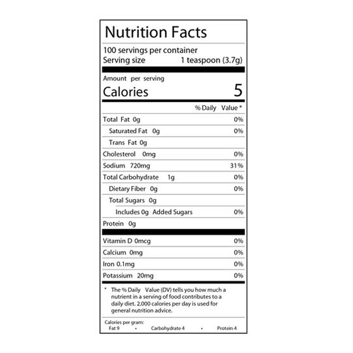 Ingredients: Sea salt, garlic, black pepper, turbinado sugar, onion, sugar, lemon juice powder, lemon oil and spices. No MSG, Gluten Free.