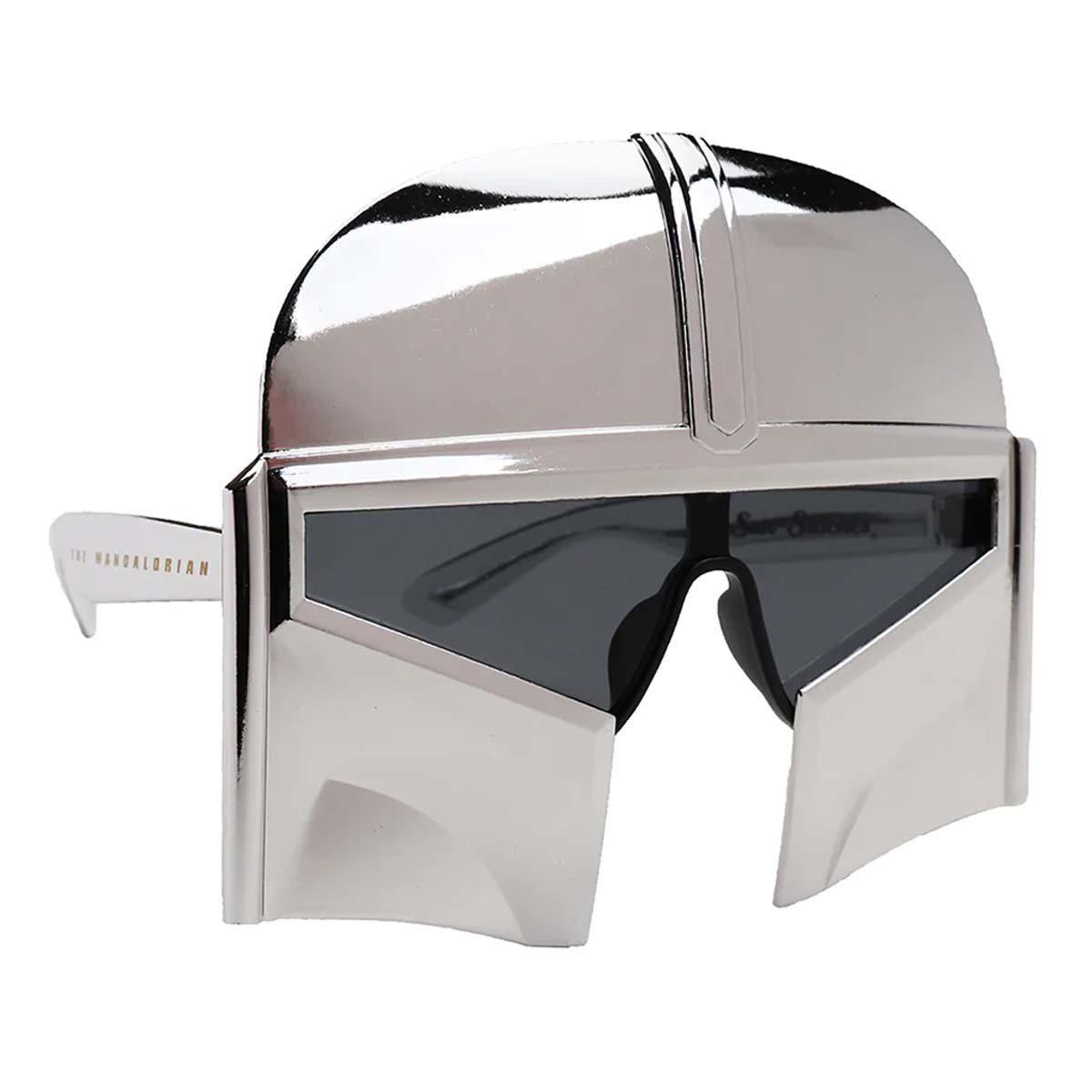 Travel through space and protect The Child in style with a pair of Star Wars Mandalorian Sun-Staches. Featuring the iconic Beskar helmet of the Mandalorians in a shiny finish now you can become the most feared bounty hunter in galaxy. Complete with UV protective lenses these look great and will keep your eyes safe from harmful sun rays. Perfect for Star Wars fans and made for fun in the sun. These aren't just sunglasses, they're Sun-Staches!