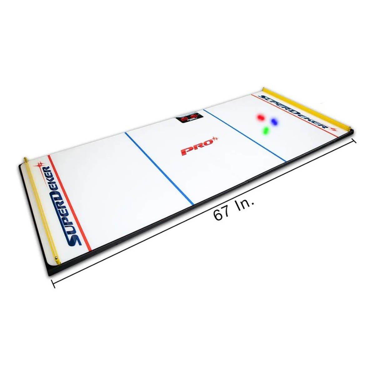 The SuperDeker Pro stick handler trainer features a Synthetic Ice Surface that feels just like real ice! Sensors built into the ice's surface track the location of the ePuck. When the ePuck crosses over the light, you hear a beep and score a point. Elite hockey players practice puck and stickhandling skills every day on and off the ice. The best off-ice stickhandling tool for improving your dangles in hockey is the SuperDeker Pro!