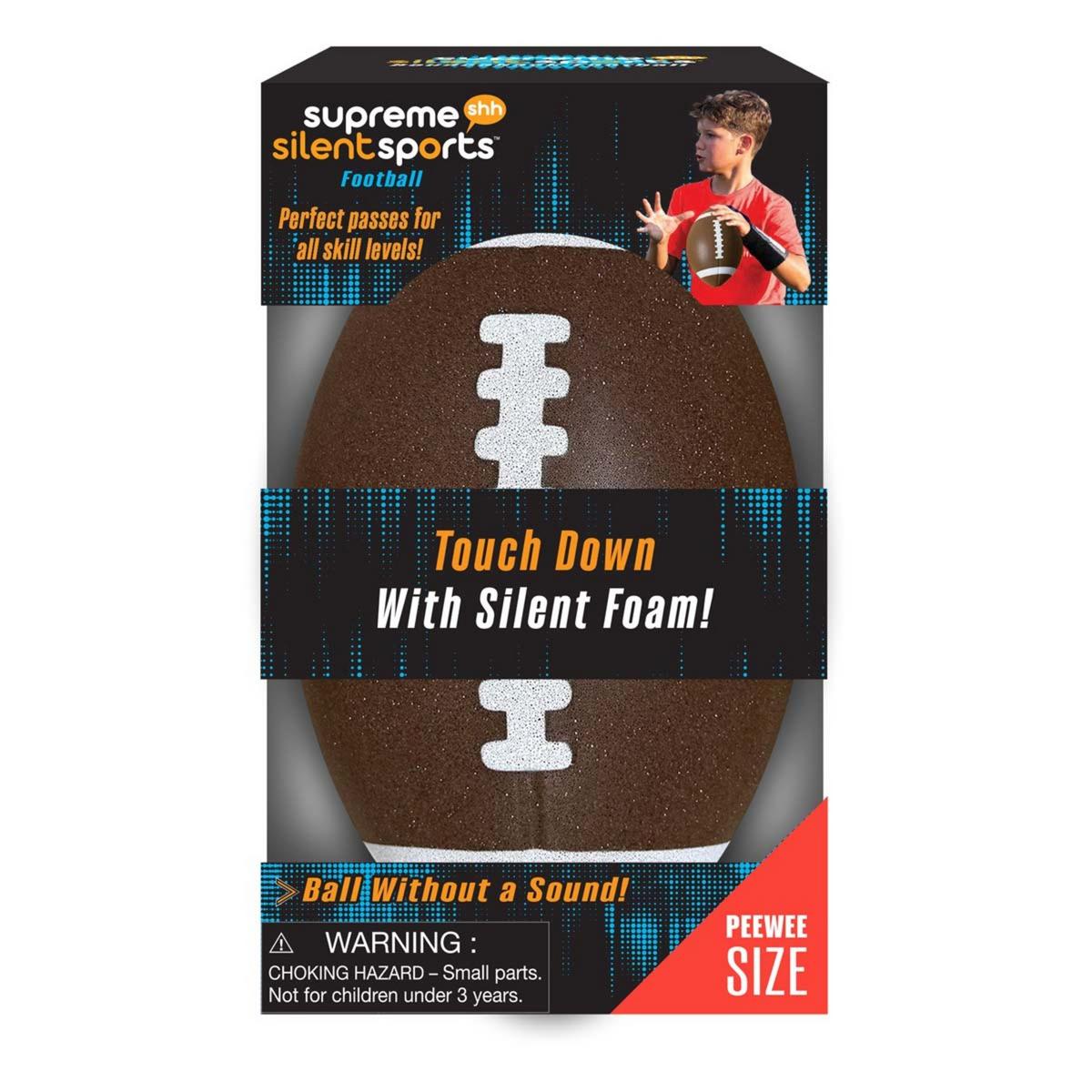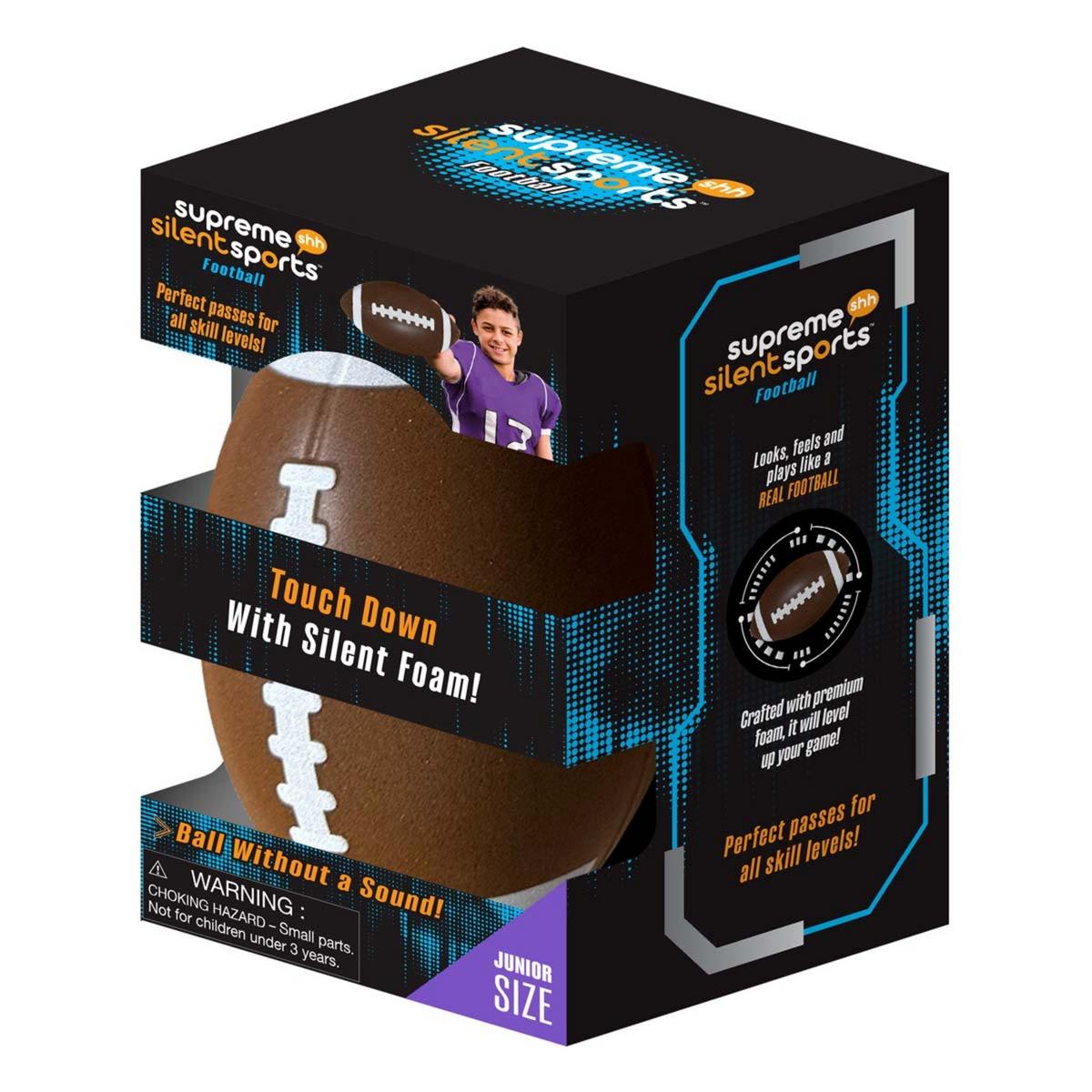 Level up your game without disturbing the peace with the Supreme Silent Sports™ Silent Football. This innovative training ball is crafted from specialized, high-density foam that absorbs sound and impact, allowing for virtually undetectable indoor play. Designed to mirror the weight and feel of a real football, it provides a realistic throwing and catching experience that helps improve accuracy and hand-eye coordination. Its "bounceback" capability makes it a standout for solo practice, as it easily returns to the player after being thrown against a wall. Safe for all ages and gentle on home interiors, the Supreme Silent Football is the ultimate solution for aspiring athletes who want to train hard, anywhere, at any time.
