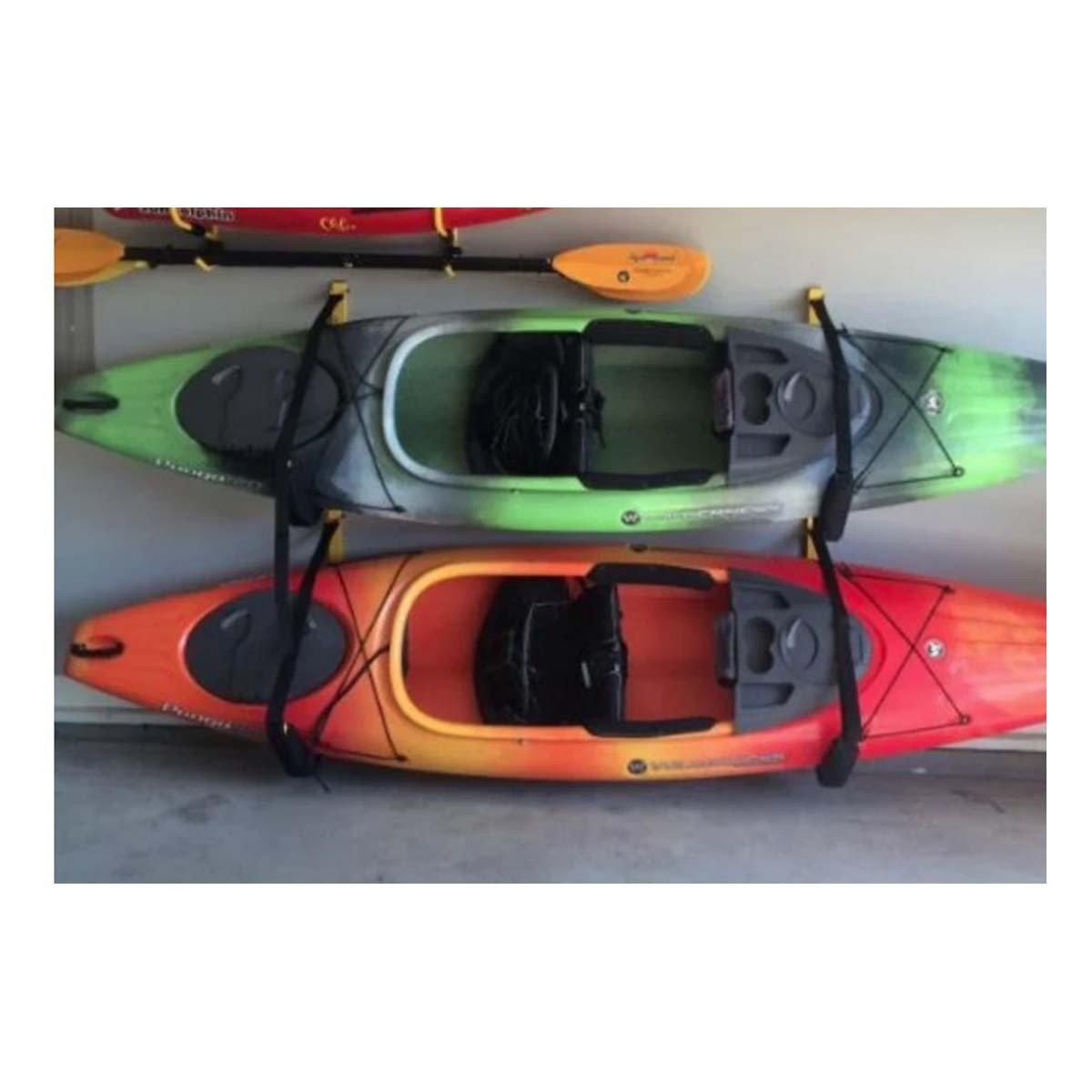 Get your gear off the ground and onto the wall in style with this space-saving storage solution! The Suspenz Big EZ Rack has the same great features as our EZ Rack but is engineered to hold larger and heavier boats. Constructed of powder-coated steel with rectangular tubing, it mounts flush to your wall, extending 27” to provide ample storage without taking up too much space. Your watercraft rests on 600D Nylon-covered, foam-padded arms to provide superior protection against scratches, dents, and abrasions. Safety straps ensure everything stays securely fastened, and with a load capacity of 150 lbs, it's perfect for all your storage needs—indoors or outdoors!