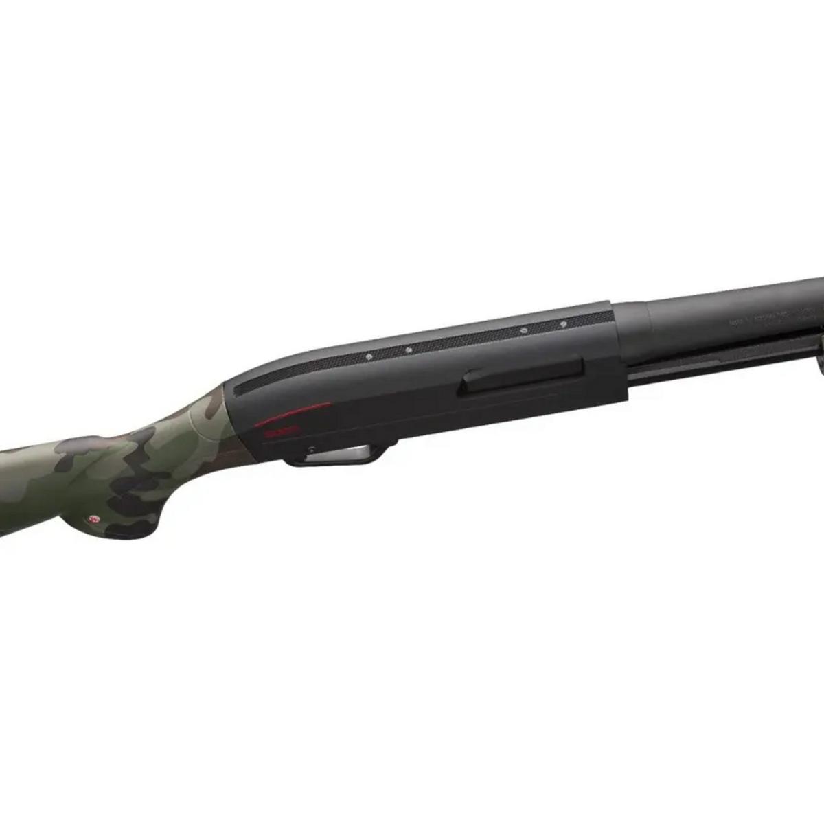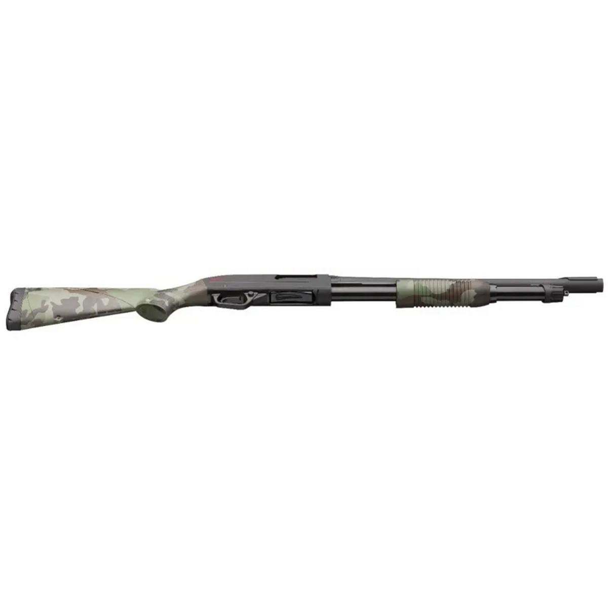 Winchester Defender shotguns are lightweight jacks-of-all-trades. The 18" barrel length with the cylinder choke tube makes it an ideal utility shotgun in camp, is maneuverable in tight brush and tucks neatly behind the seat of your truck. This Hybrid Defender has a style all its own with a durable matte black finish on the barrel and receiver and Woodland camo hydrodipped stock.