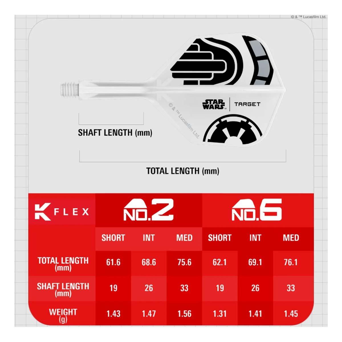 March onto the oche with the STAR WARS™ | TARGET Stormtrooper K-Flex Integrated Flights and Shafts, created in collaboration with The Walt Disney Company. Designed in crisp white with bold black detailing, these official K-Flex shafts capture the unmistakable look of Imperial armour and the discipline of the Empire’s most recognisable soldiers.