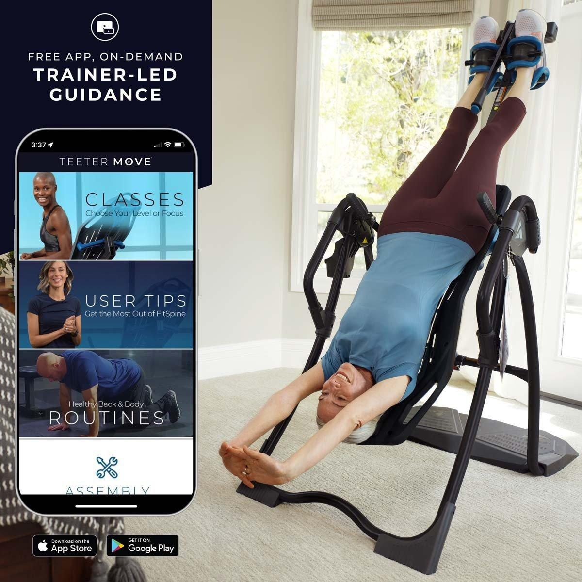 Discover how amazing your back can feel with the premium Teeter FitSpine LX9 Inversion Table, designed to give you more comfort and real results on your journey to back pain relief. The smooth FlexTech™ Bed encourages your spine to decompress better than any other inversion table surface, while the patented 8-point floating suspension system flexes as you move for a deeper stretch. Ideal for back pain sufferers, the Deluxe EZ-Reach™ Ankle System features an extra-long handle and micro-adjustments to ensure the most comfortable fit. The LX9 offers a unique arched base with boarding platform that makes mounting and dismounting even easier! Stretch Max™ Handles and EZ-Stretch™ Traction Handles provide added support and stretching options to you while inverted. Included Lumbar Bridge and Acupressure Nodes add targeted traction and pressure-point relief for boosted benefits. Precision-balanced and easy to store, the Teeter FitSpine LX9 offers a comfortable, effective way to find back pain relief in your own home. Feel better, move better, live better... with Teeter.