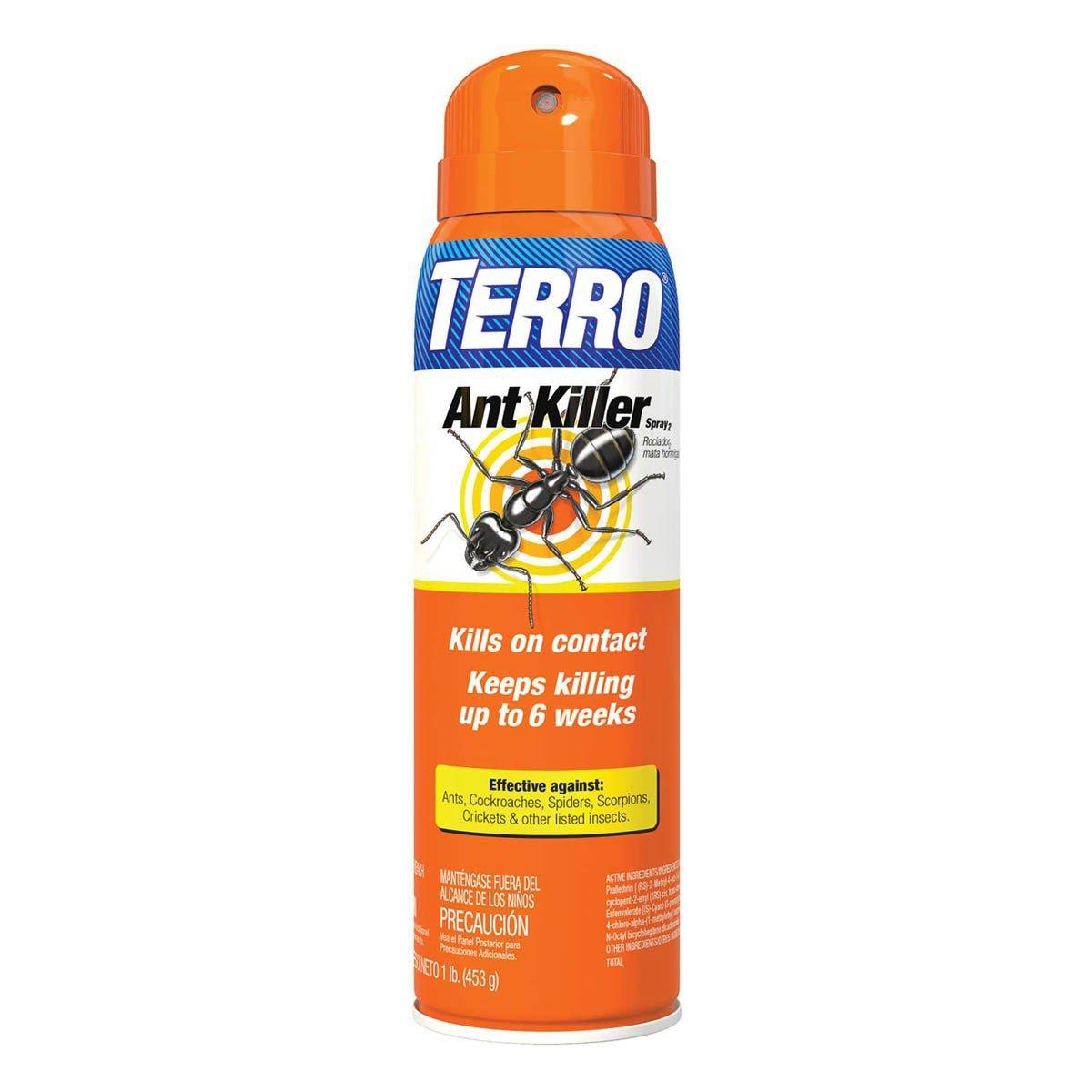 Use TERRO Ant Killer Spray inside and outside the home when it comes to ants and more. Killing ants, spiders, cockroaches, and many other insects, this truly will be a favorite spray to use against common household pests. When using this aerosol spray, get fast knock-down results and expect up to 6 weeks of protection from further pests. Apply in and out of the home in areas of concern for best results. Spray insects on contact if you can, or in places they like to hide. Some common spots include storage areas, sinks, plumbing, baseboards, and drains. For outdoor use, apply the spray in wind-free conditions to increase accuracy.