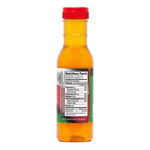 This product is the bomb. I mean really this stuff is off the chain. Cooking ribs has never been easier. Finally a pourable, brushable sauce that can be used at any time during the cooking process or just poured over the top after your finished cooking. It does not get any easier than this. Texas Pepper Jelly rib candy is the perfect blend of sweet and heat. Just open and apply to ribs. But wait ... this product also goes well with chicken, pork loin, lamb and more. The possibilities are endless. Ingredients: Sugar, 100% Fruit Juice from Apple Juice, Pear Juice, Peach Juice (Filtered Water, Fruit Juice Concentrates), Citric Acid, Mango Pure, Natural Flavors, Ascorbic Acid (Vitamin C)., Vinegar, Habanero, Pectin.