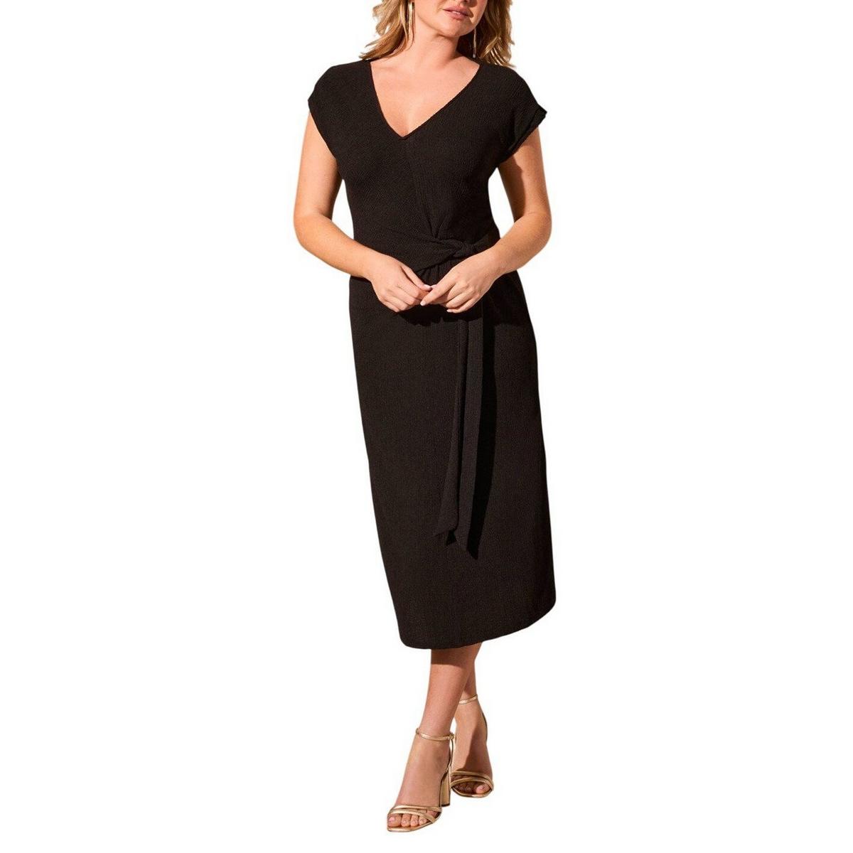 {"reviews":[],"offset":0,"limit":10,"total":0}"Full Description:\nElegance meets casual ease in this dress, featuring an adjustable waist tie for a flattering shape. The textured jersey knit offers a soft, stretchy feel, while short sleeves keep it refreshingly cool.\n\nFeatures:\n\u003cul>\n\u003cli>V-neckline with self binding\u003c/li>\n\u003cli>Short cap sleeves\u003c/li>\n\u003cli>Adjustable front tie detail\u003c/li>\n\u003cli>48'' long\u003c/li>\n\u003cli>Textured jersey knit\u003c/li>\n\u003c/ul>\n\nSpecifications:\n\u003cul>\n\u003cli>Machine wash normal cycle cold water, with like colors, do not bleach, d5, do not iron.\u003c/li>\n\u003cli>94% POLYESTER 6% SPANDEX\u003c/li>\n\u003c/ul>\n"