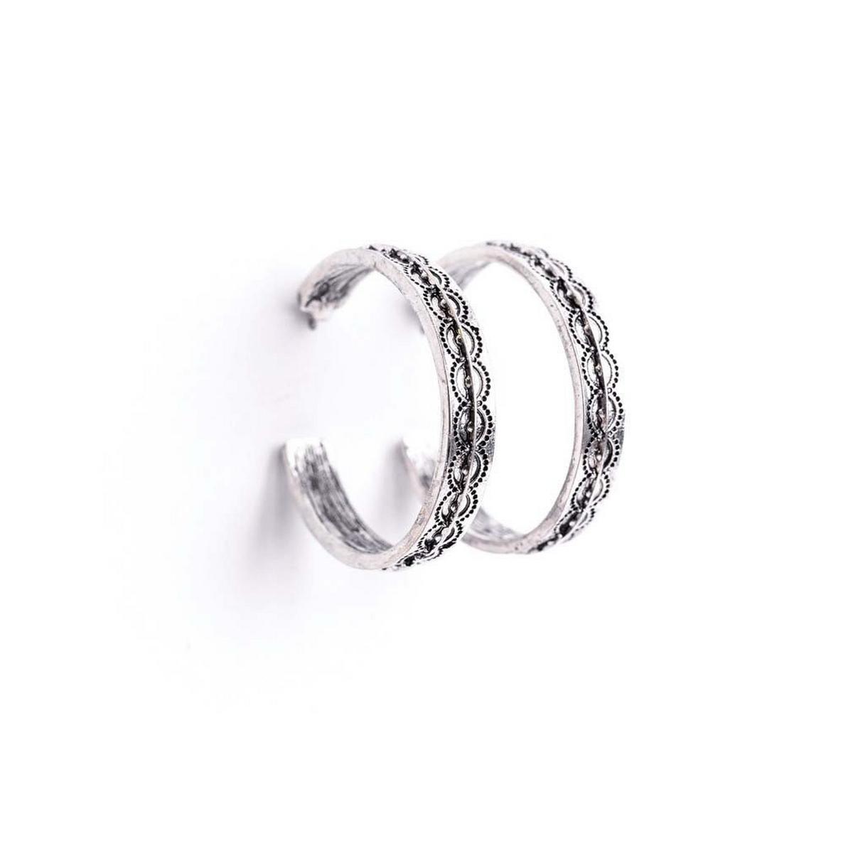 Burnished Silver Tribal Hoop Earring