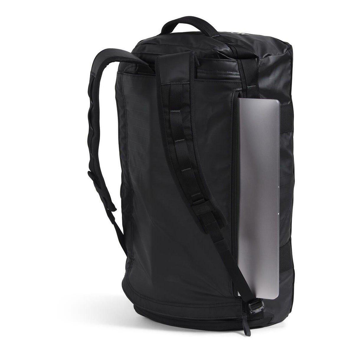The North Face Base Camp Voyager Duffel Bag is perfect for your next outdoor camping adventure. This Base Camp Voyager duffle bag offers an adjustable divider in the main compartment to position your gear the way you want. Plus, the small external secure-zip pocket holds smaller items that you might need quick access to. An external padded laptop sleeve also can carry up to a 15" laptop while the external water bottle pocket conveniently holds your water bottles on the go. Comfortbaly carry this North Face duffel bag over your shouldeer with the padded shoulder strap or unclip the strap to carry as a duffle bag. Wherever you're headed, outdoors or indoors, The North Face Base Camp Voyager Duffel Bag will securely hold your belongings.