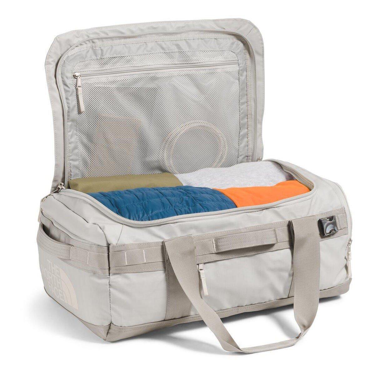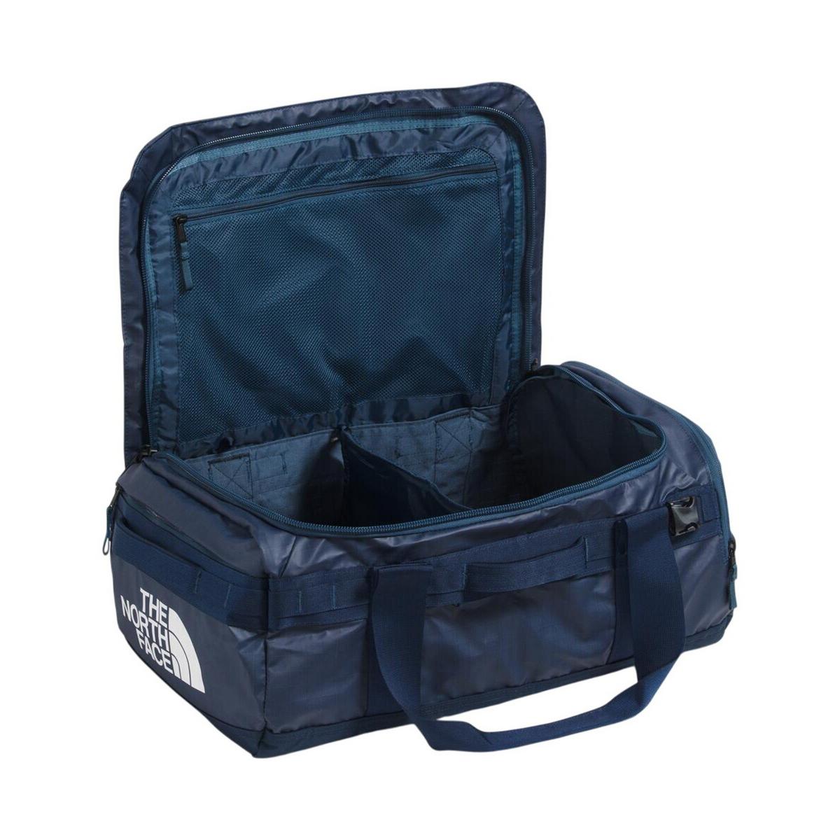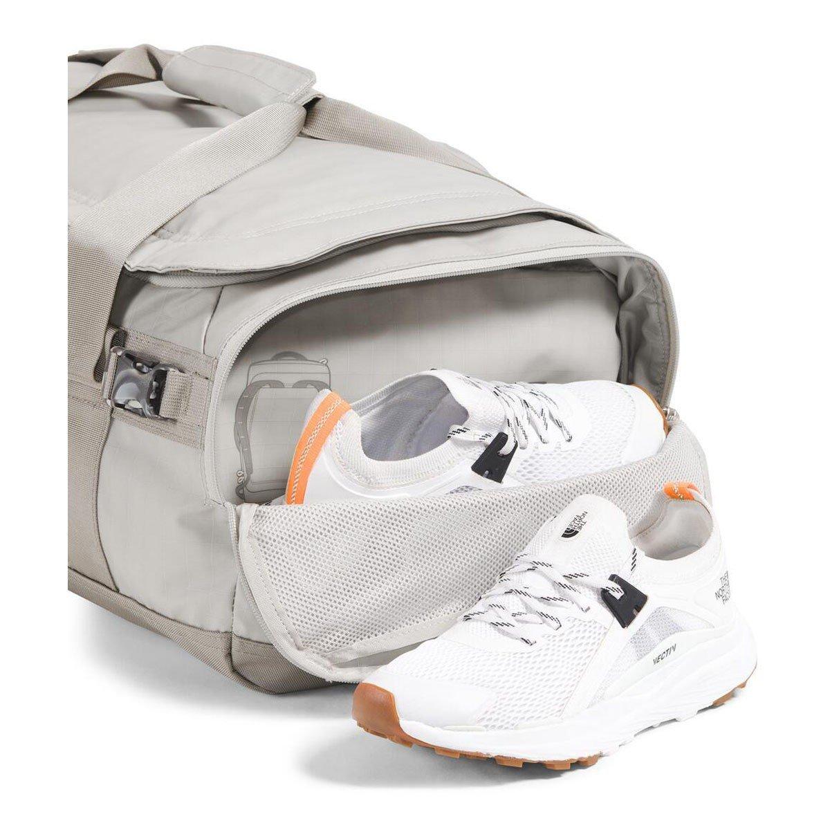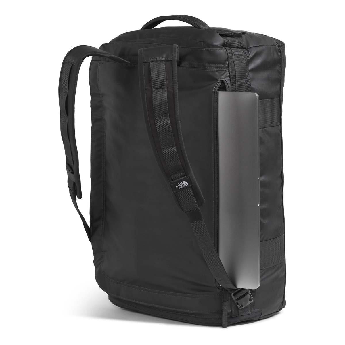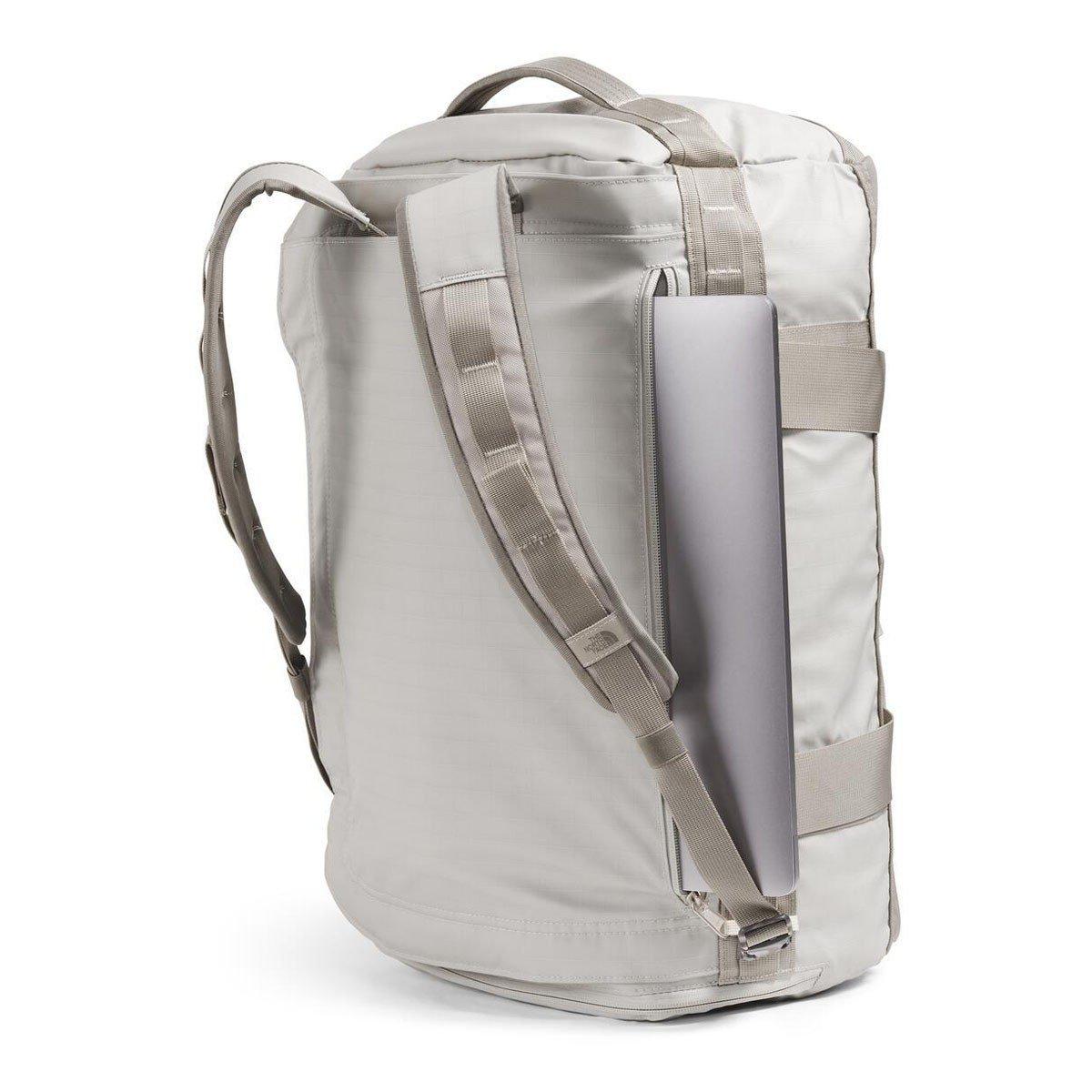 The North Face Base Camp Voyager Duffel is the perfect lightweight and durable travel companion. With recycled webbing, buckles, and mesh, you can rest assured that your belongings will stay safe and secure during your travels. The comfortable, padded shoulder straps unclip and can be concealed behind the back panel so you can carry it as a backpack or duffel. An external, secure-zip, padded 15'' laptop pocket is perfect for storing your laptop safely, while the internal, secure-zip pocket holds small essentials. Plus, the North Face Base Camp Voyager Duffel features a small, external, secure-zip pocket that holds quick-access items such as a passport. For a weekend trip or an overnight outing, use the North Face Base Camp Voyager Duffel.