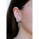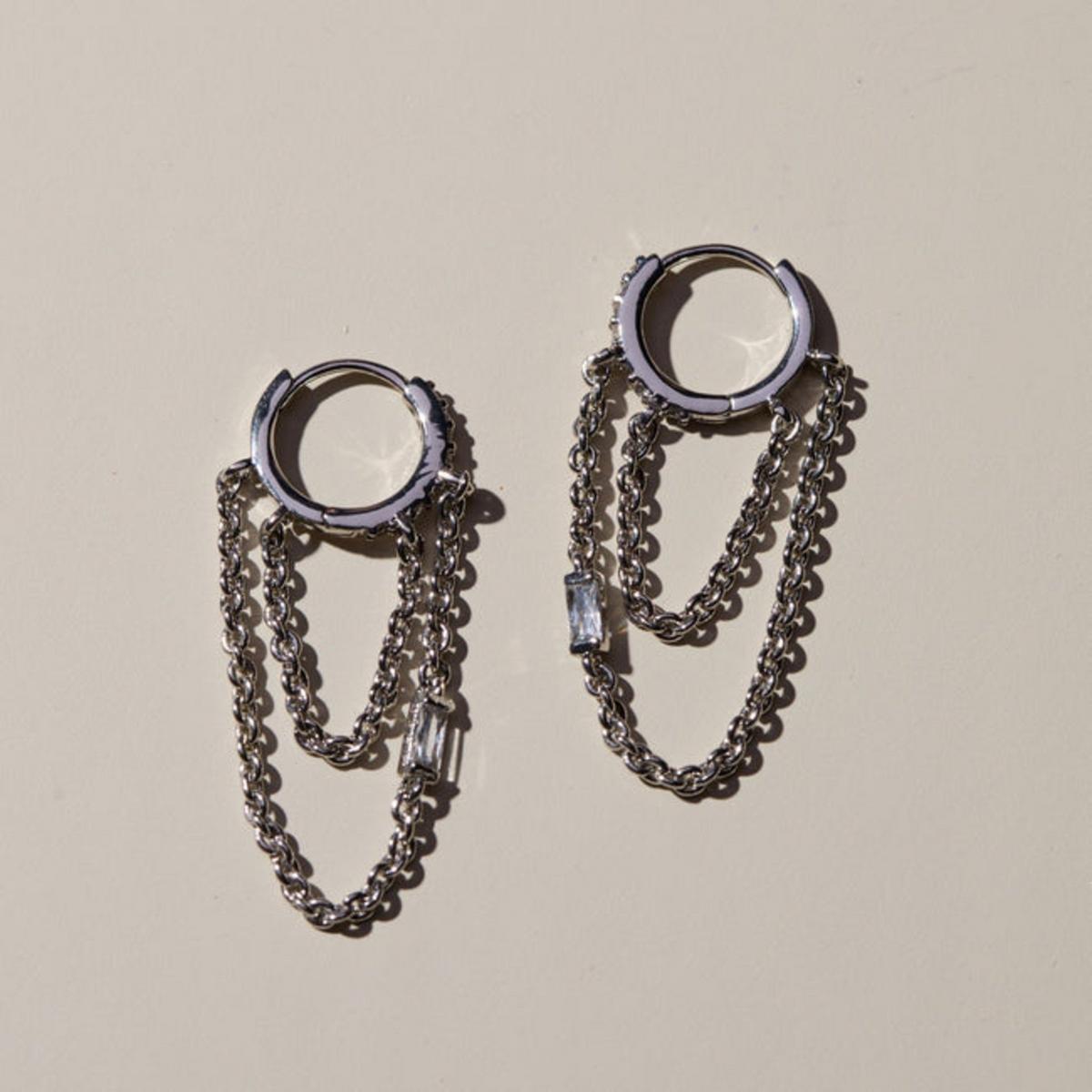 Amp up any ear stack with the Gold Thea Chain Huggies. Stack them to make a bold layered statement or keep it simple and create a unique edge. These huggies are crafted with 14k gold-plated hardware, looped chains and emerald cut glass stone accents. Let this timeless accessory speak volumes with your style.