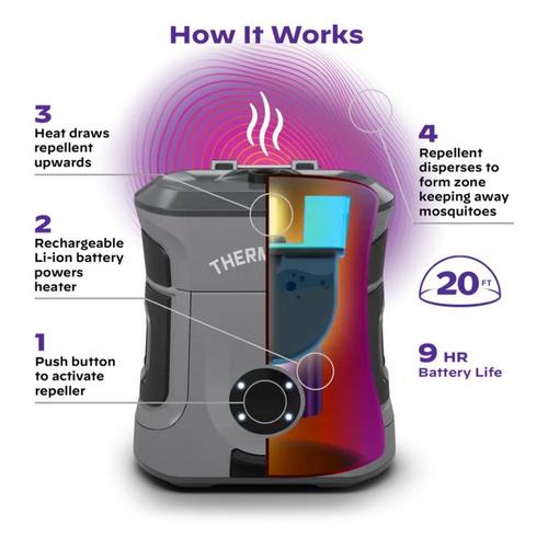 Mosquitoes ruin everything. Thermacell's award-winning technology keeps mosquitoes away by creating a 20FT protection zone around you. Our proprietary formula precisely targets mosquito sensors, driving them away. With consistent protection that doesn't weaken over time, Thermacell helps you live your best outside life without the use of bug sprays or lotions on your skin. Features a 9-hour rechargeable battery. Durable and compact with an easy-to-grip rubber over-mold, the EX90 features an IP54 rating to protect against dirt and moisture. Allowed to bring on Airplanes. 12 hours of mosquito repellent included.