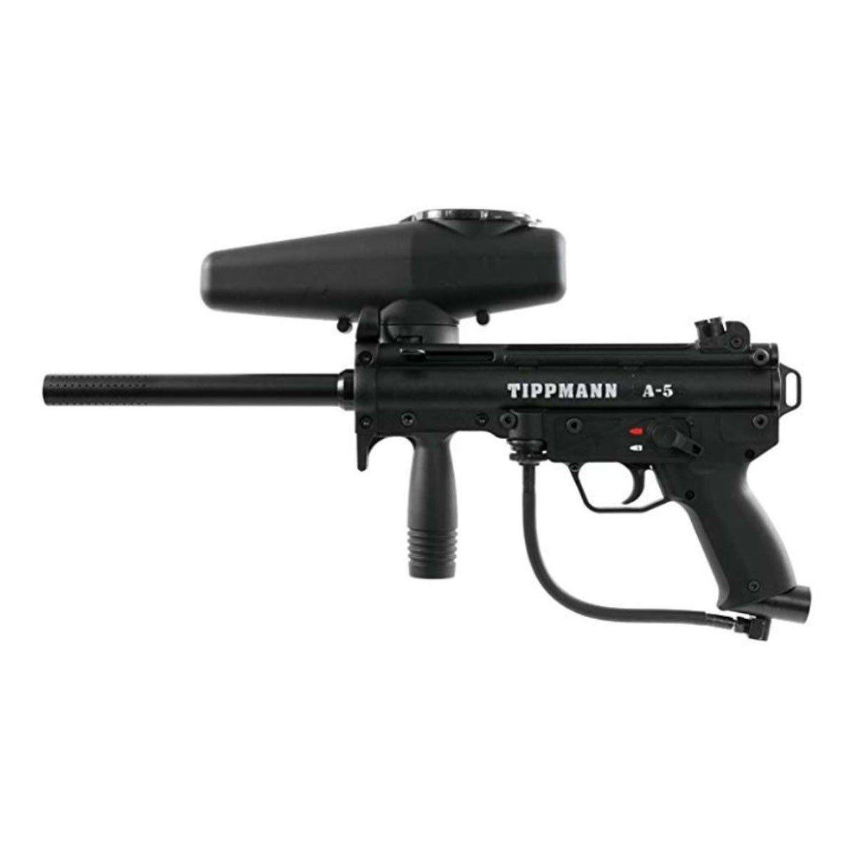 Tippmann A-5 paintball marker has a cyclone feed system that feeds up to 15 balls per second without batteries. The external selector switch of this Tippmann paintball marker lets you easily switch from safety to firing mode. The large, front grip of the Tippmann A5 Marker offers a better feel and enables easy upgrades. This paintball gun has an 8.5-inch, stock barrel that improves accuracy and reduces noise. Moreover, the internal bore of this Tippmann paintball marker has a wide design for quick field stripping and easy maintenance. Don't forget Paintballs!