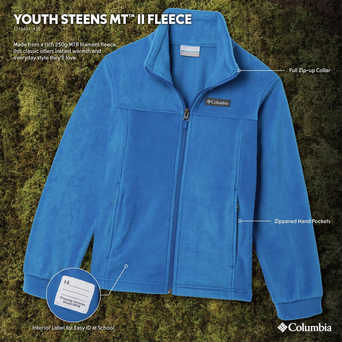 The Toddler Columbia Steens Mountain II Fleece Jacket will keep your little one warm and cozy all year long. The 100% polyester build is sure to stay comfortable through multiple washes. Constructed with midweight fleece, this toddler Columbia jacket is soft yet durable for layering throughout the different seasons. Plus, this toddler fleece jacket features a full-zip front and two zippered hand pockets. For unpredictable temperatures, you can rely on the Toddler Boys' Columbia Steens Mountain II Fleece Jacket.