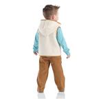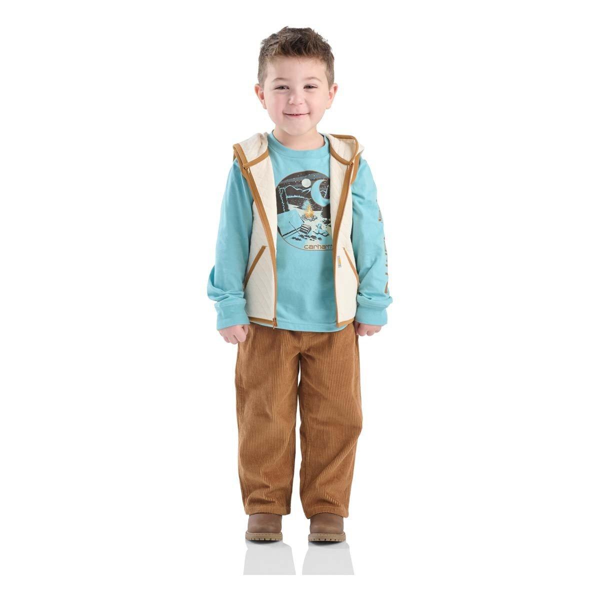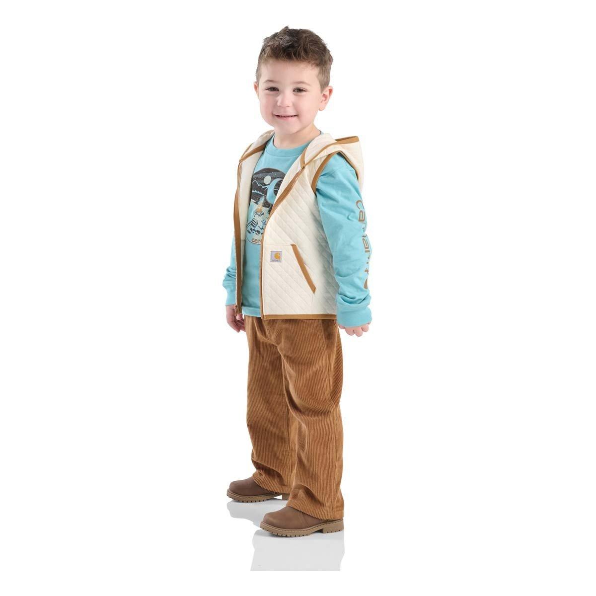 An all-in-one Carhartt look for little adventurers. This boys' three-piece set makes getting him dressed for the day easy. The long-sleeve t-shirt, corduroy pants and hooded vest are all made of soft and durable cotton. The vest is quilted for a blanket-like feel.