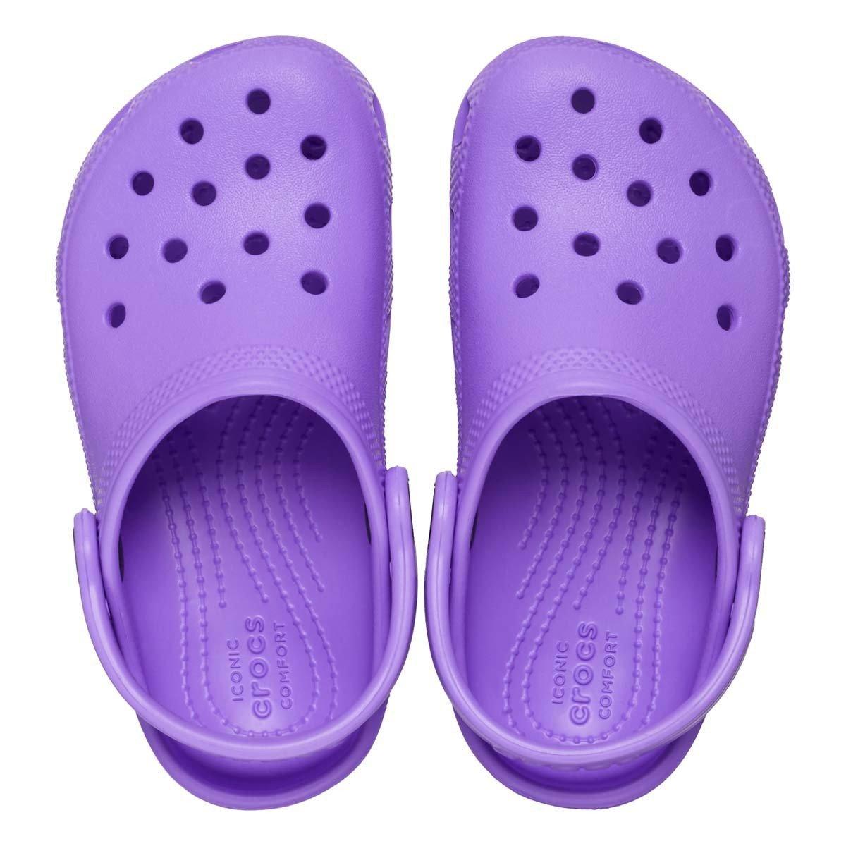 The Toddler Crocs Classic Clogs keep the adventure going. These toddler Crocs support your little one's tiny feet with the cushioning comfort of Croslite™ foam and built-in arch support. The ventilation ports let their feet breathe so they stay fresher longer, while the water-friendly construction of these toddler Crocs makes sure they can be worn in and out of the water, dry quickly, and are easily washable. With the variety of different color options, you'll be able to find the perfect pair of toddler Crocs to fit their personality!