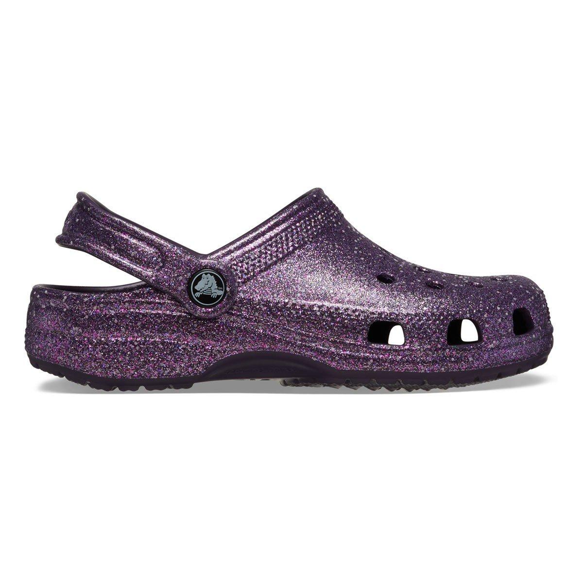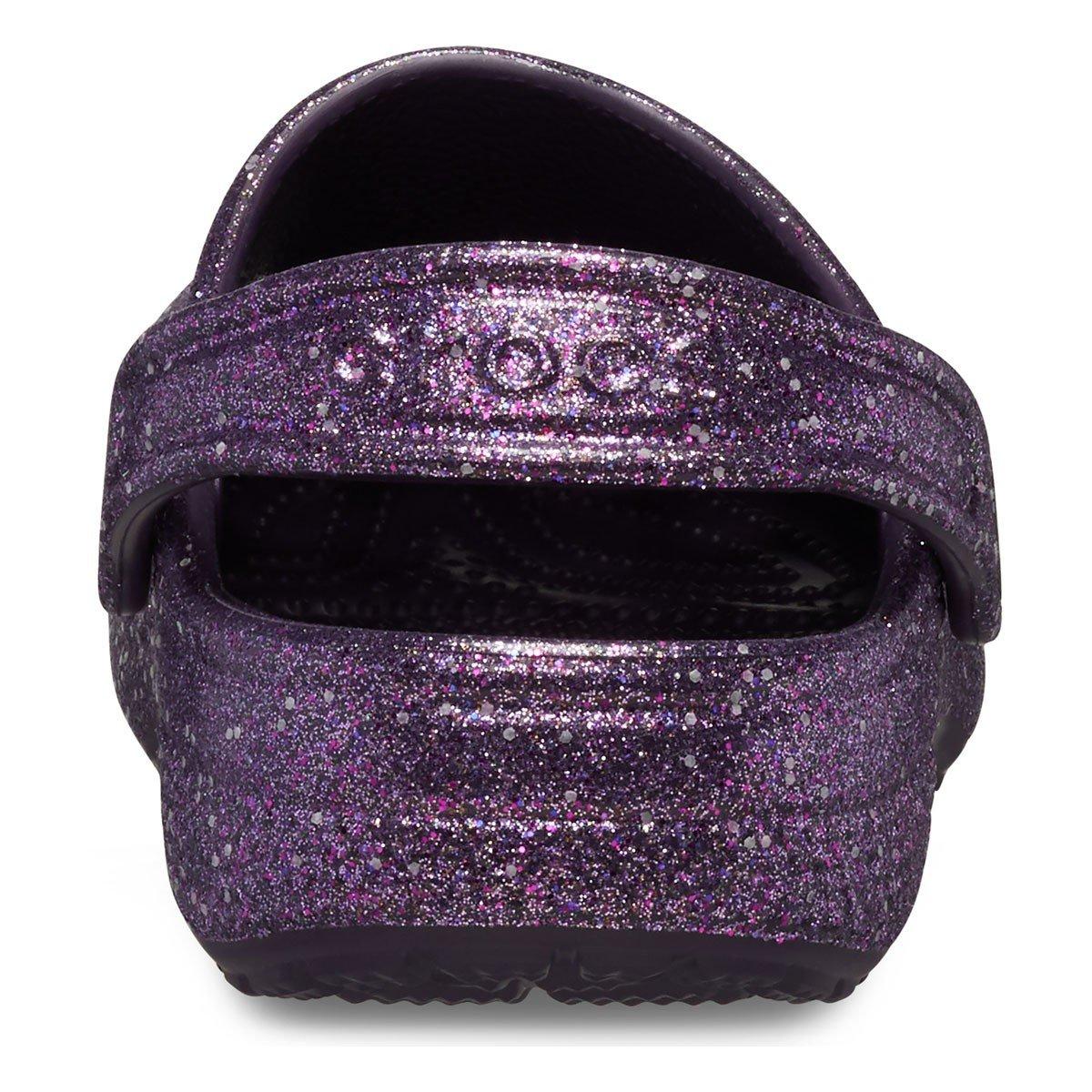Introduce your little one to a universe of comfort and style with the Toddler Crocs Classic Space Glitter Clogs. These enchanting clogs feature a dazzling, space-themed glitter design that will captivate any child's imagination, making them perfect for everyday adventures or special outings. Crafted with Crocs' signature lightweight and durable Croslite™ material, these clogs ensure all-day comfort and easy slip-on functionality, catering to the energetic spirit of toddlers. The pivoting heel straps provide a secure fit, while the ventilation ports promote breathability and quick water drainage, making them ideal for both indoor and outdoor play. Give your child the gift of cosmic comfort and sparkle, and watch their steps light up with joy!